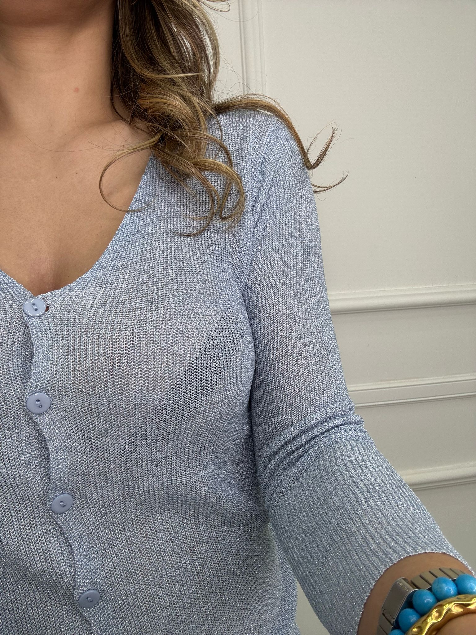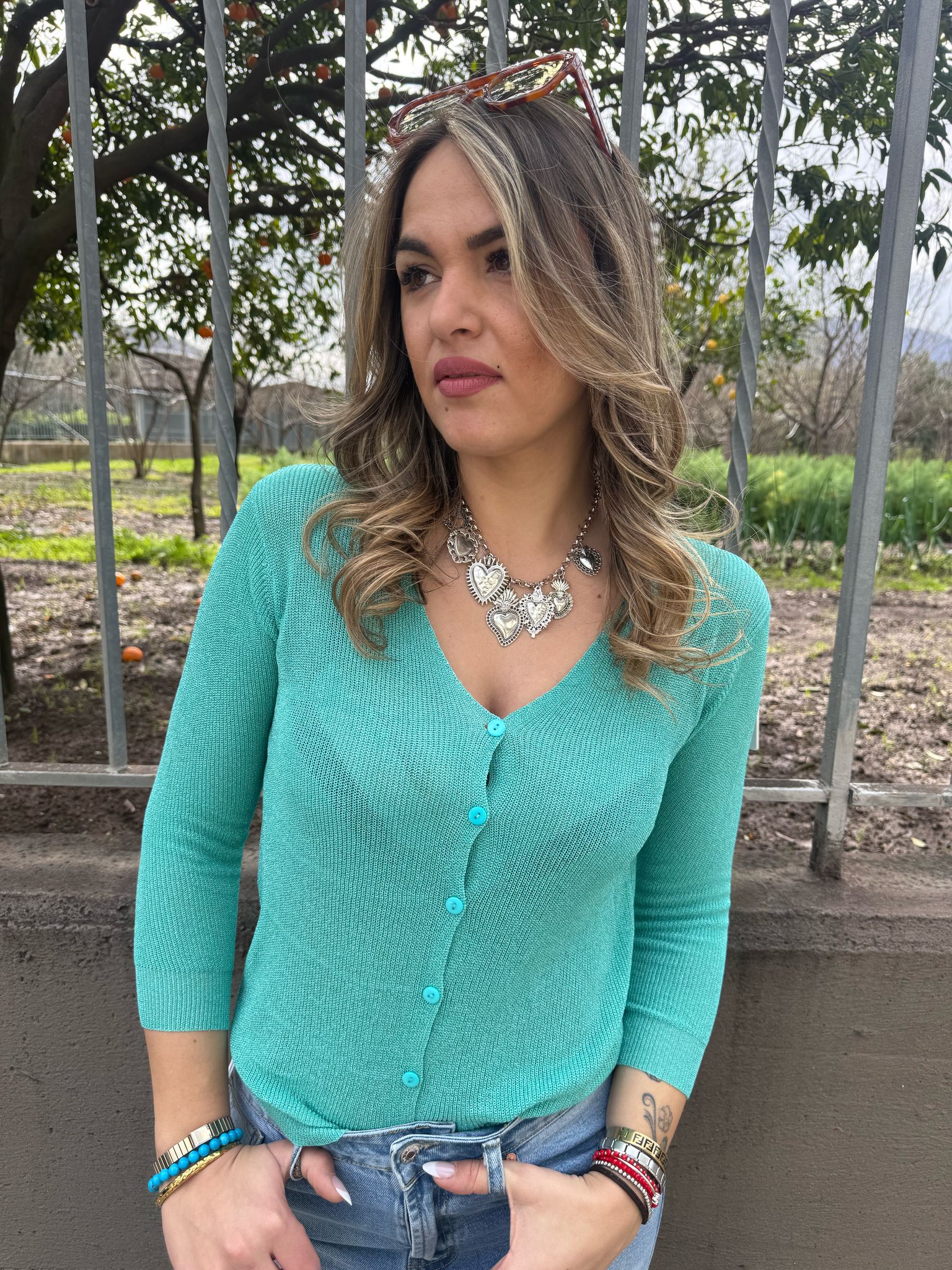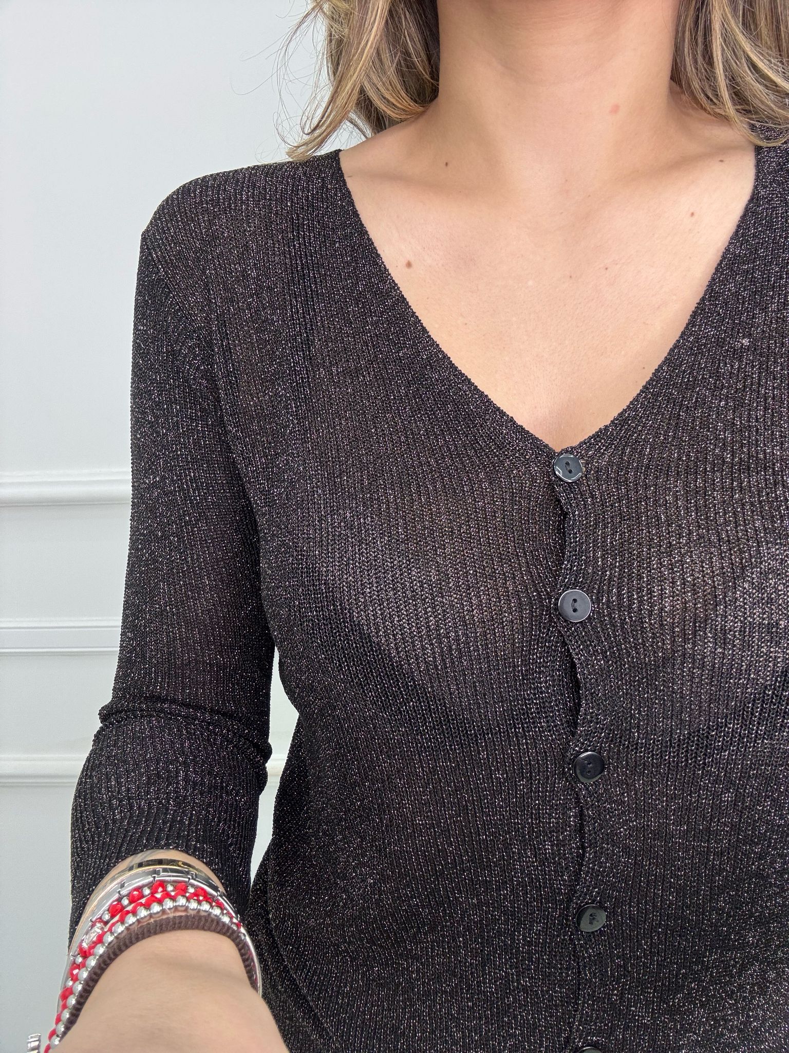 Cardigan in filo Tinta unita Scollo a V Laminato Elasticizzato Veste tranquillamente fino ad una taglia “L” Tessuto: viscosa, poliestere, elastan