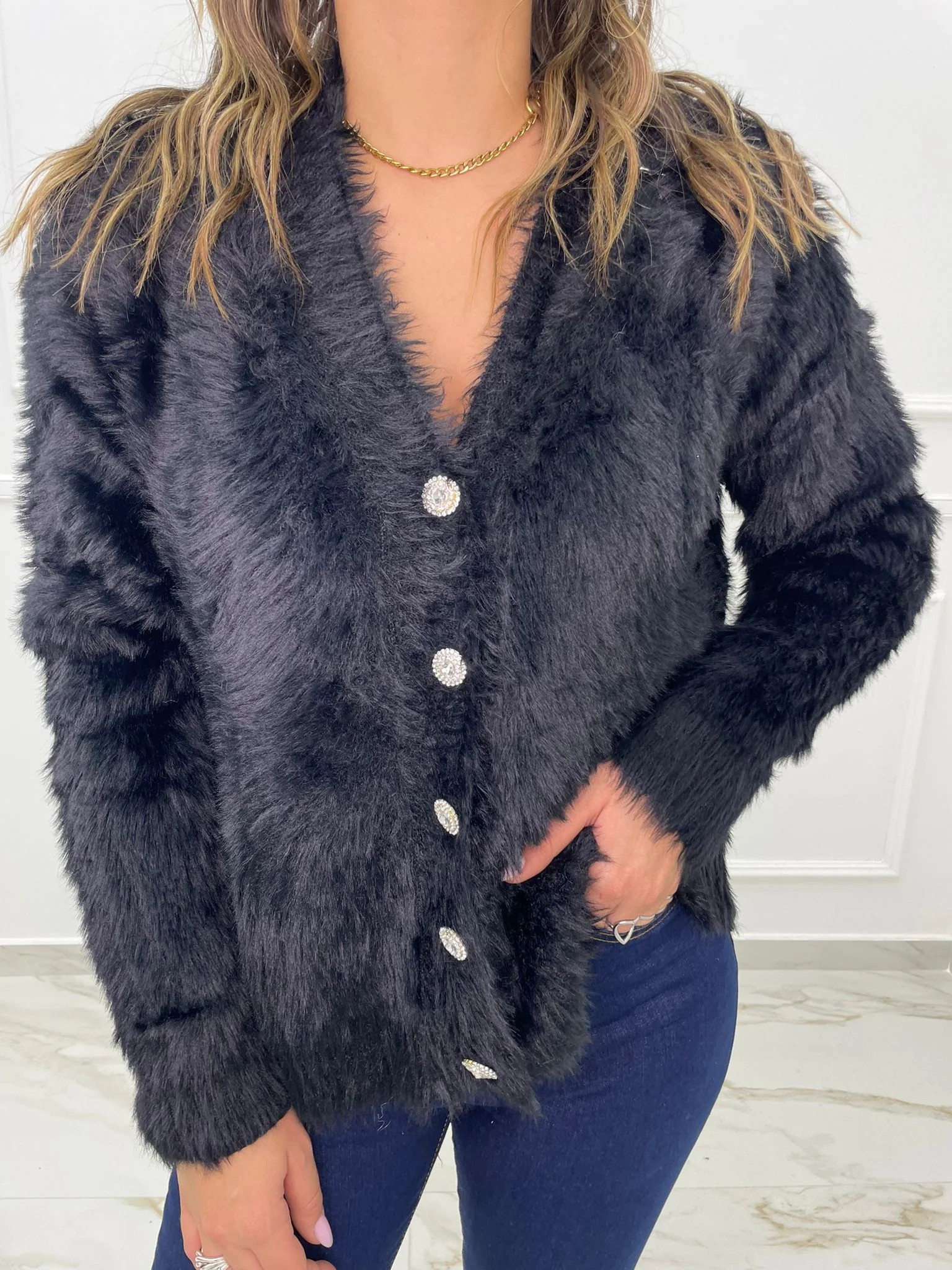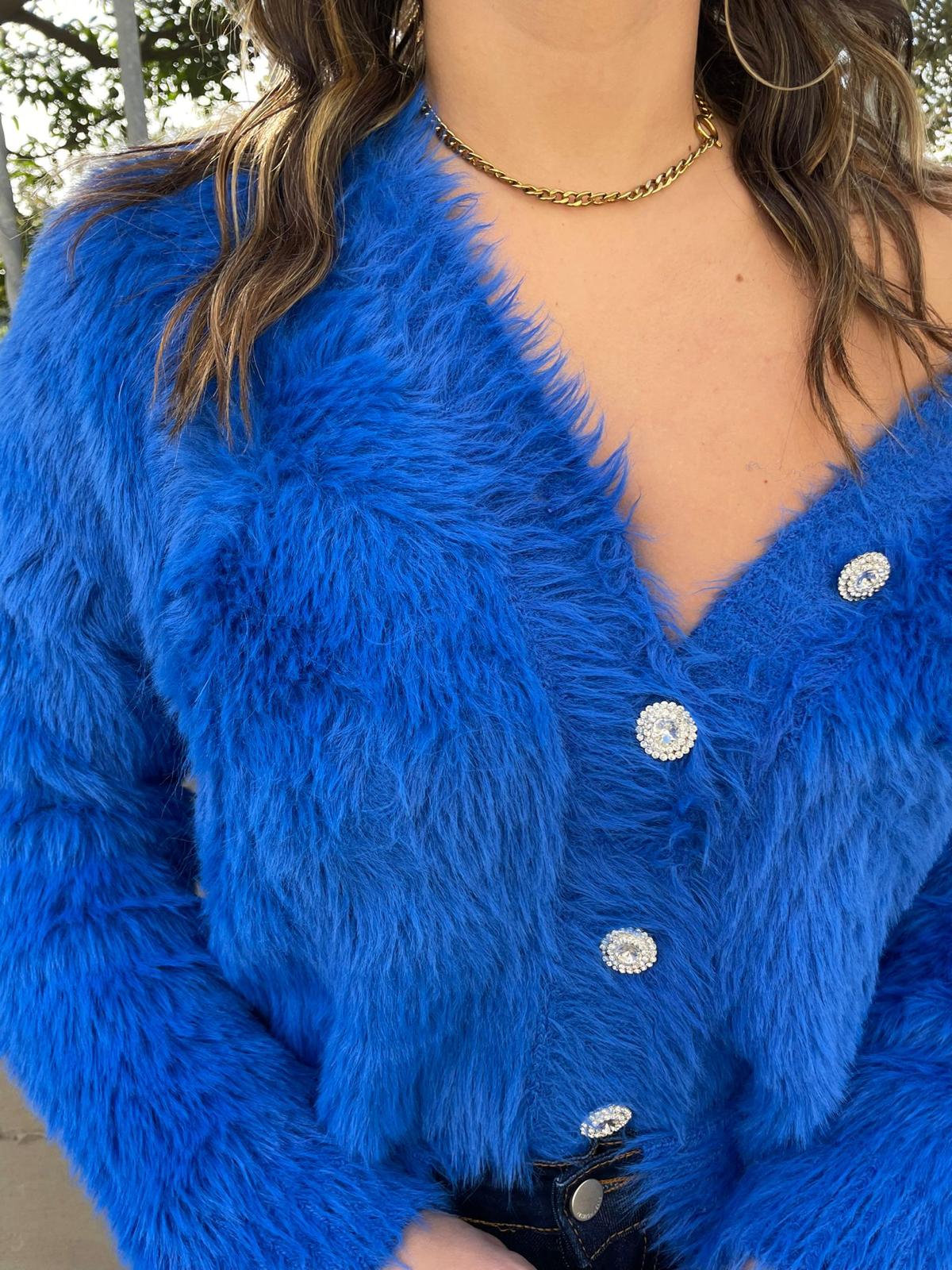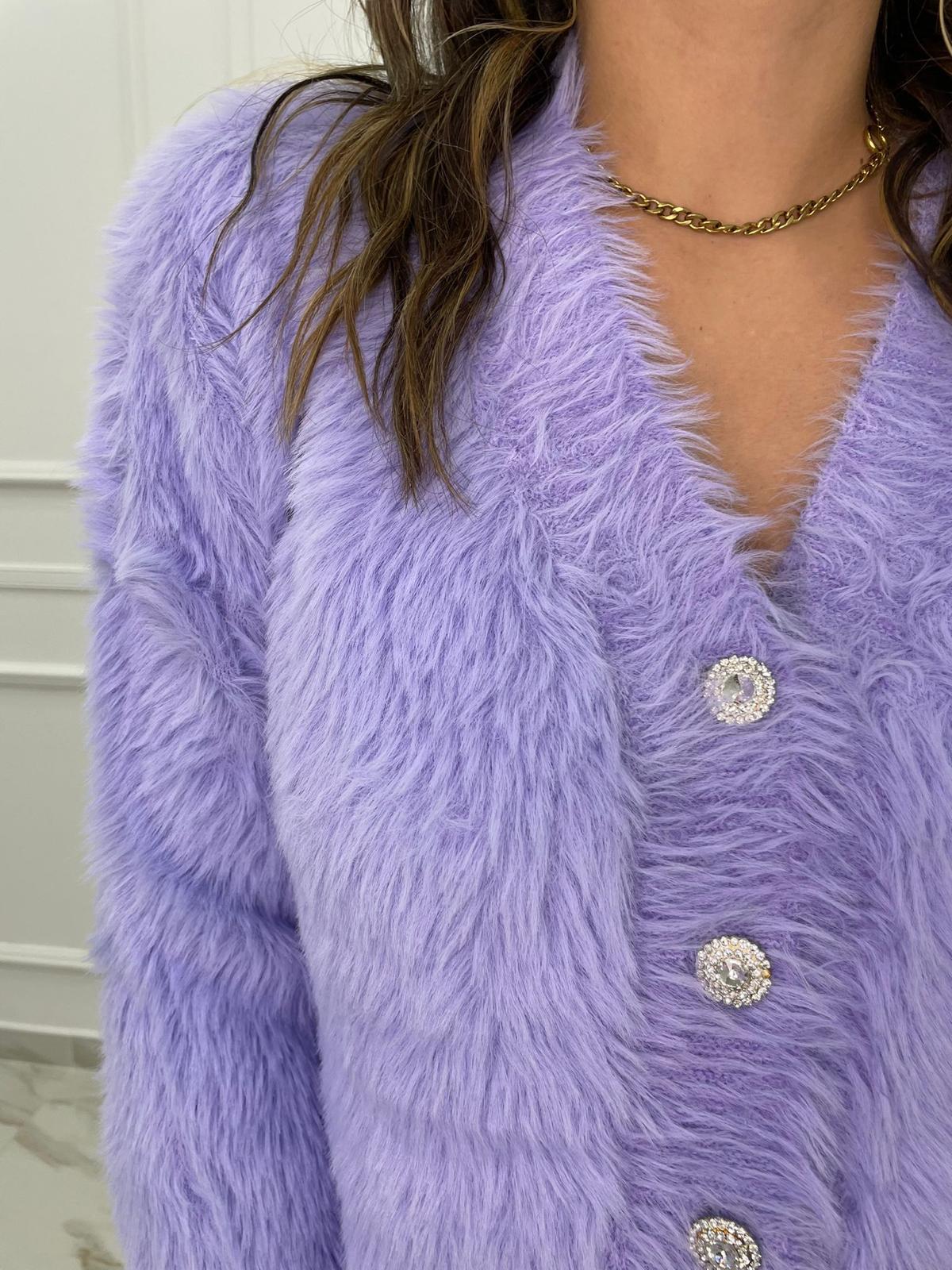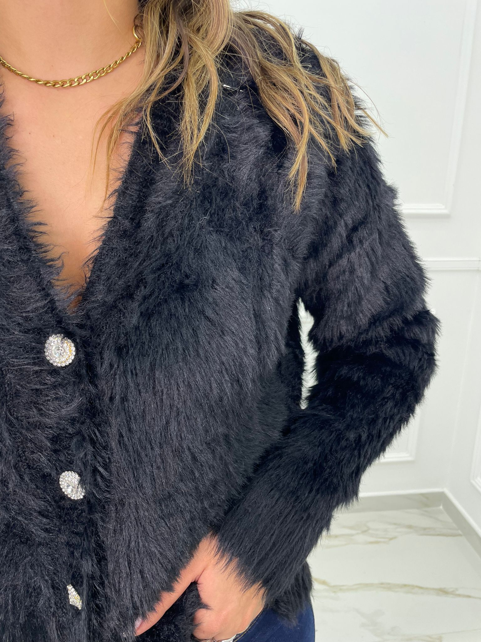 Cardigan in pelo con bottoni swarovski