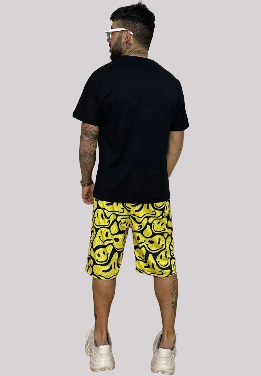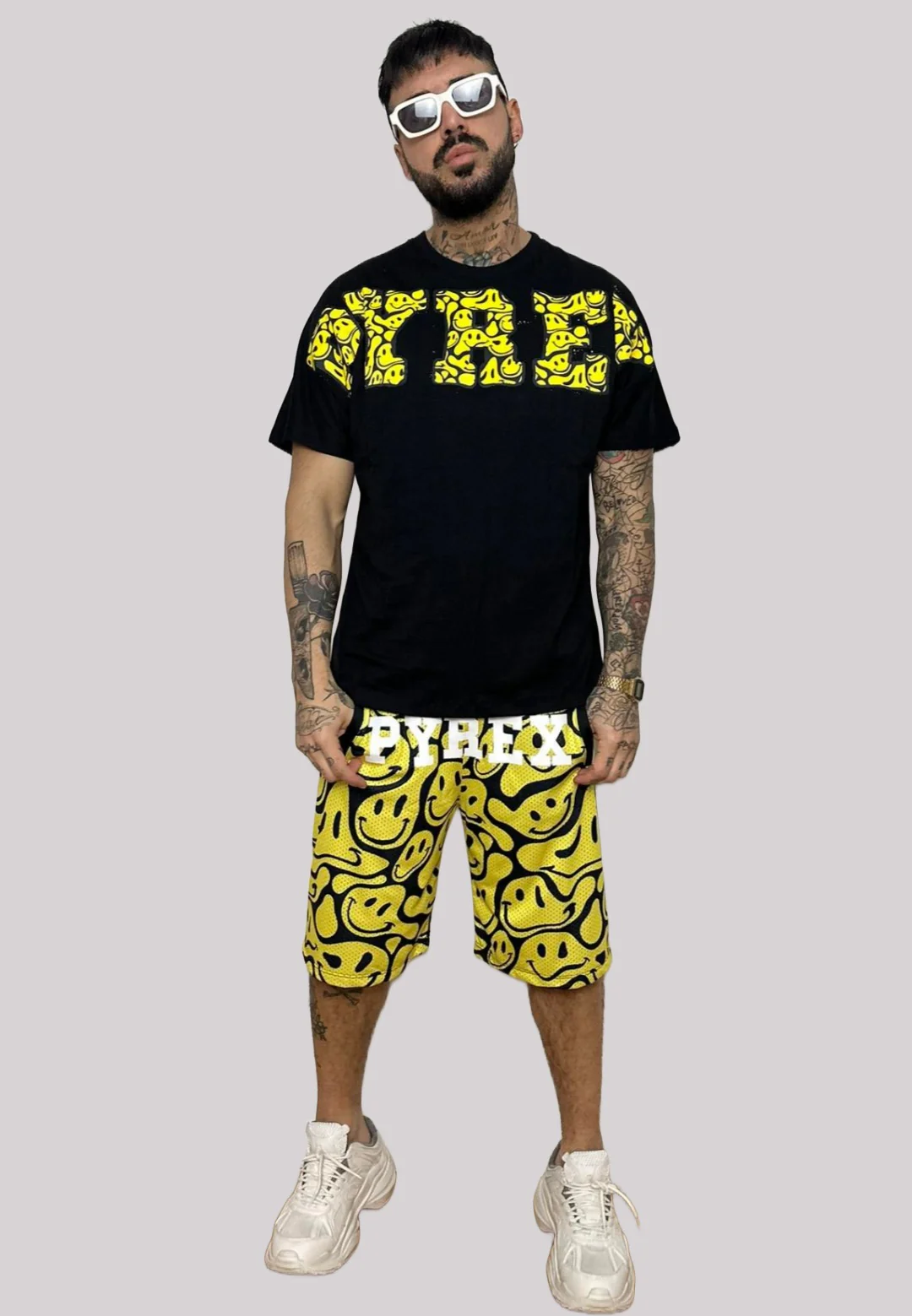 Completino estivo PYREX t-shirt+ bermuda in rete stampa Smile nero/giallo