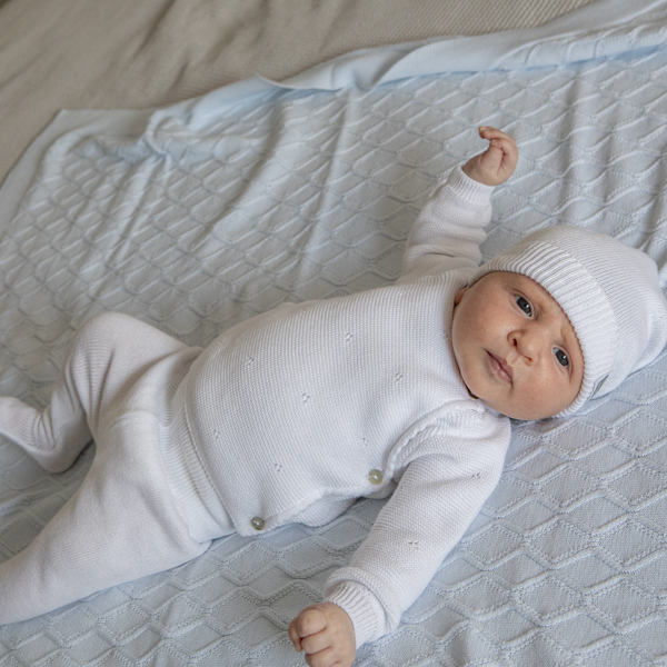 - Realizzato in 100% cotone con una morbidezza imbattibile e con un bellissimo disegno di piccoli trafori.
