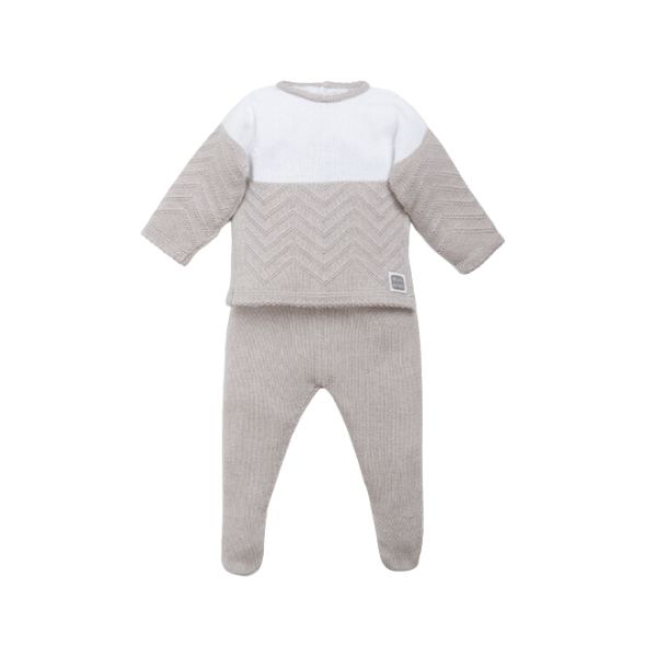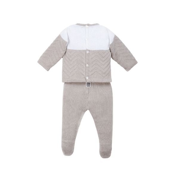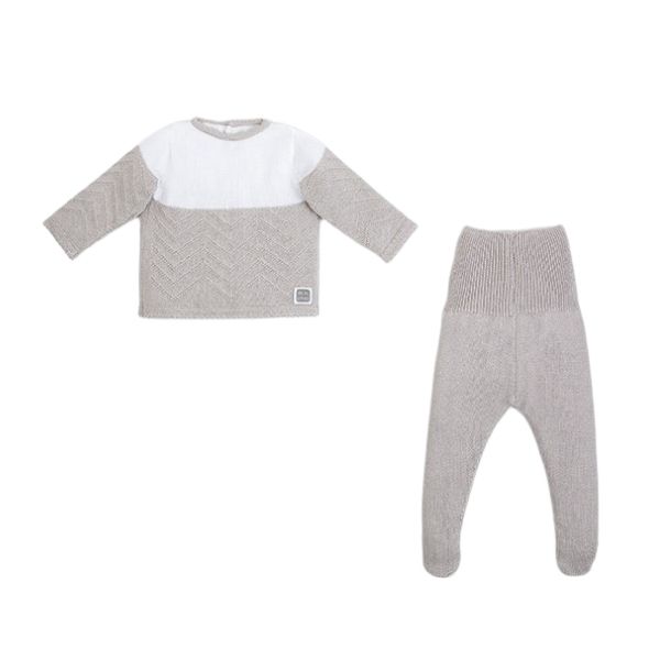 Descrizione del prodotto: Il completo Alfa รจ fatto al 100% di cotone di prima qualitร . I loro abiti offrono la massima qualitร per il tuo bebรจ grazie alla loro morbidezza e comfort. Inoltre si tratta di un design molto originale, con un contrasto di colori sulla maglia che creano una combinazione di stile e qualitร del tessuto. Disponibile in 3 colori diversi in modo da abbinarlo con altri accessori, come guanti o cappellini.