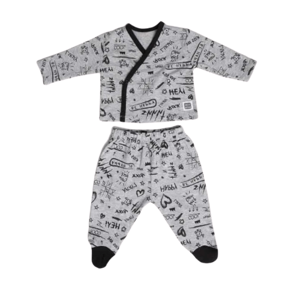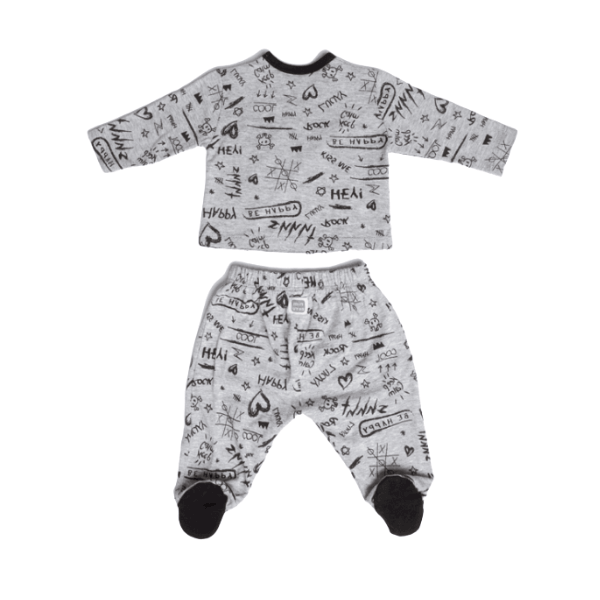 Descrizione del prodotto: Un completo molto carino e moderno per il tuo bebรจ. Il top e pantaloni sono in 100% cotone. Maglietta incrociata, con chiusura nel laterale. Molto comoda per cambiare il bebรจ. Pantaloni caldi con piedini e cintura con elastico. Dai una occhiata anche ai pigiamo con lo stesso design. Caratteristiche del prodotto: 100% Cotone Lavaggio normale in lavatrice (30ยบC) ร morbido e confortevole Disegnato e fabbricato a Spagna