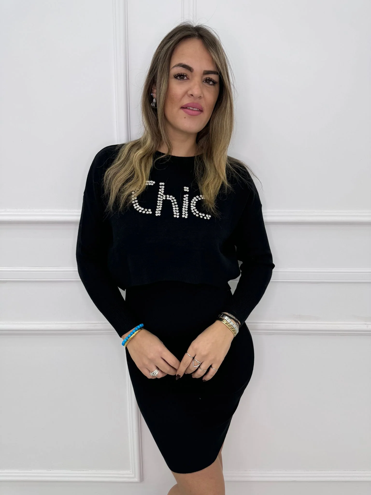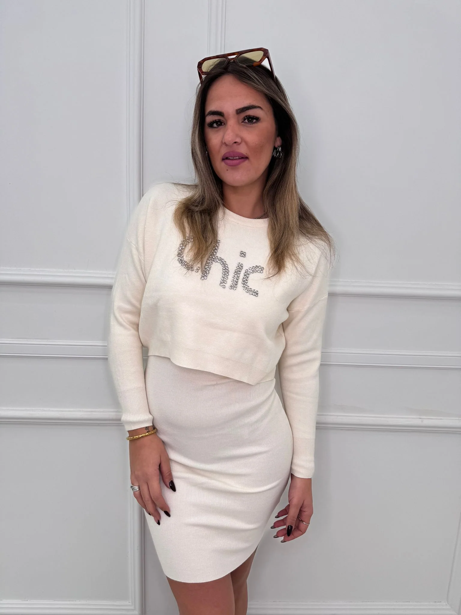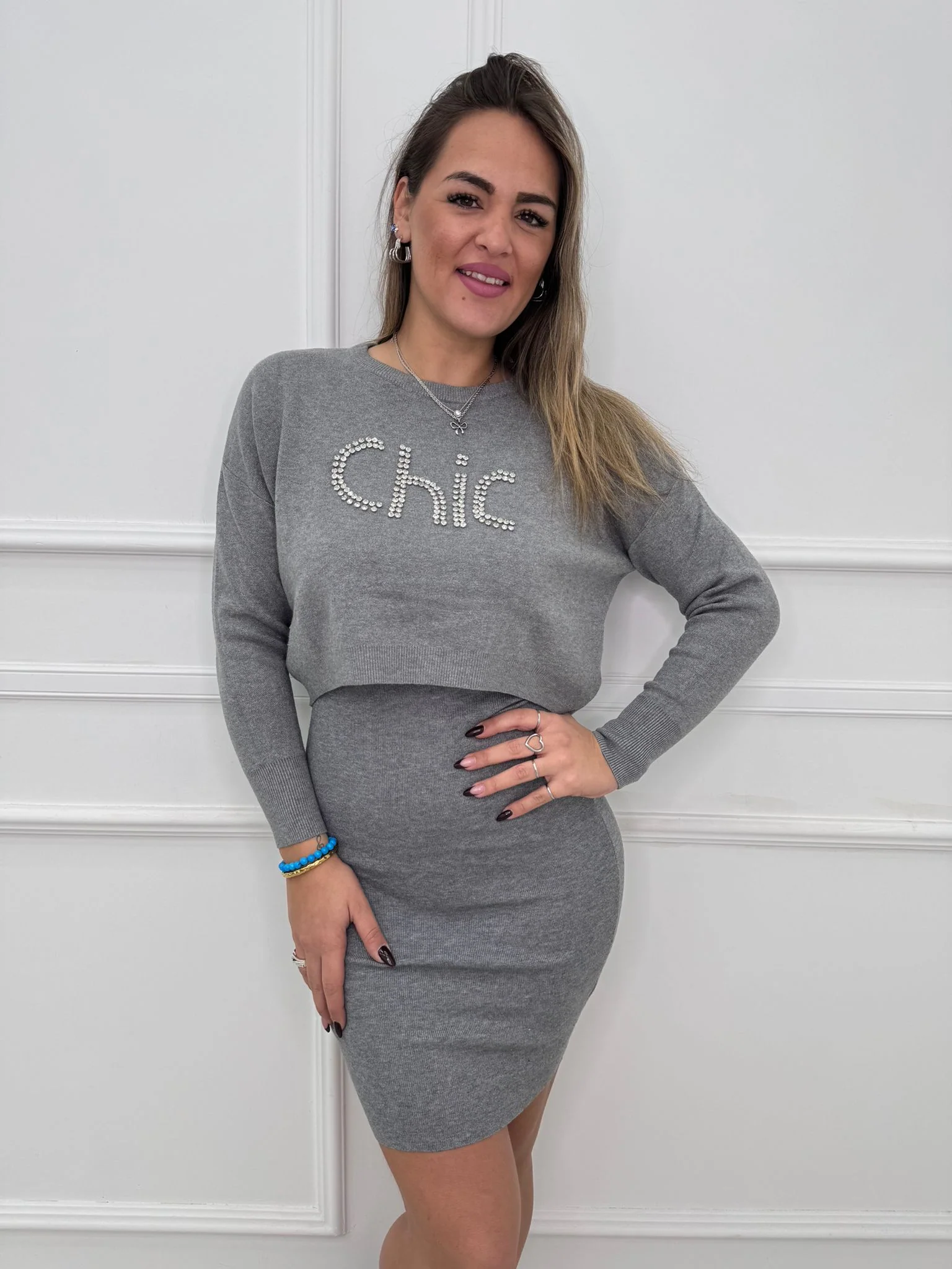 Coordinato 2 pezzi con vestito e maglia crop