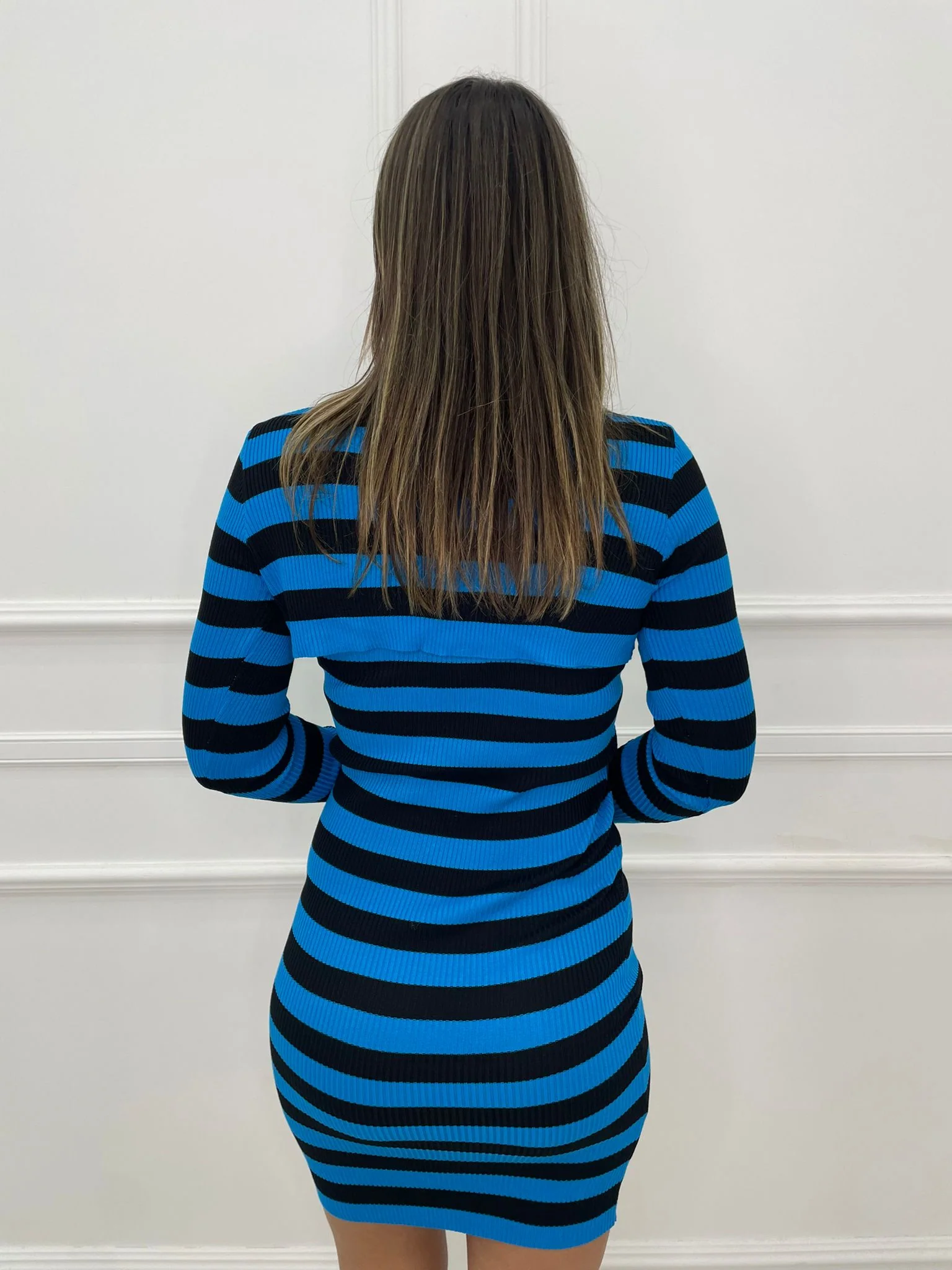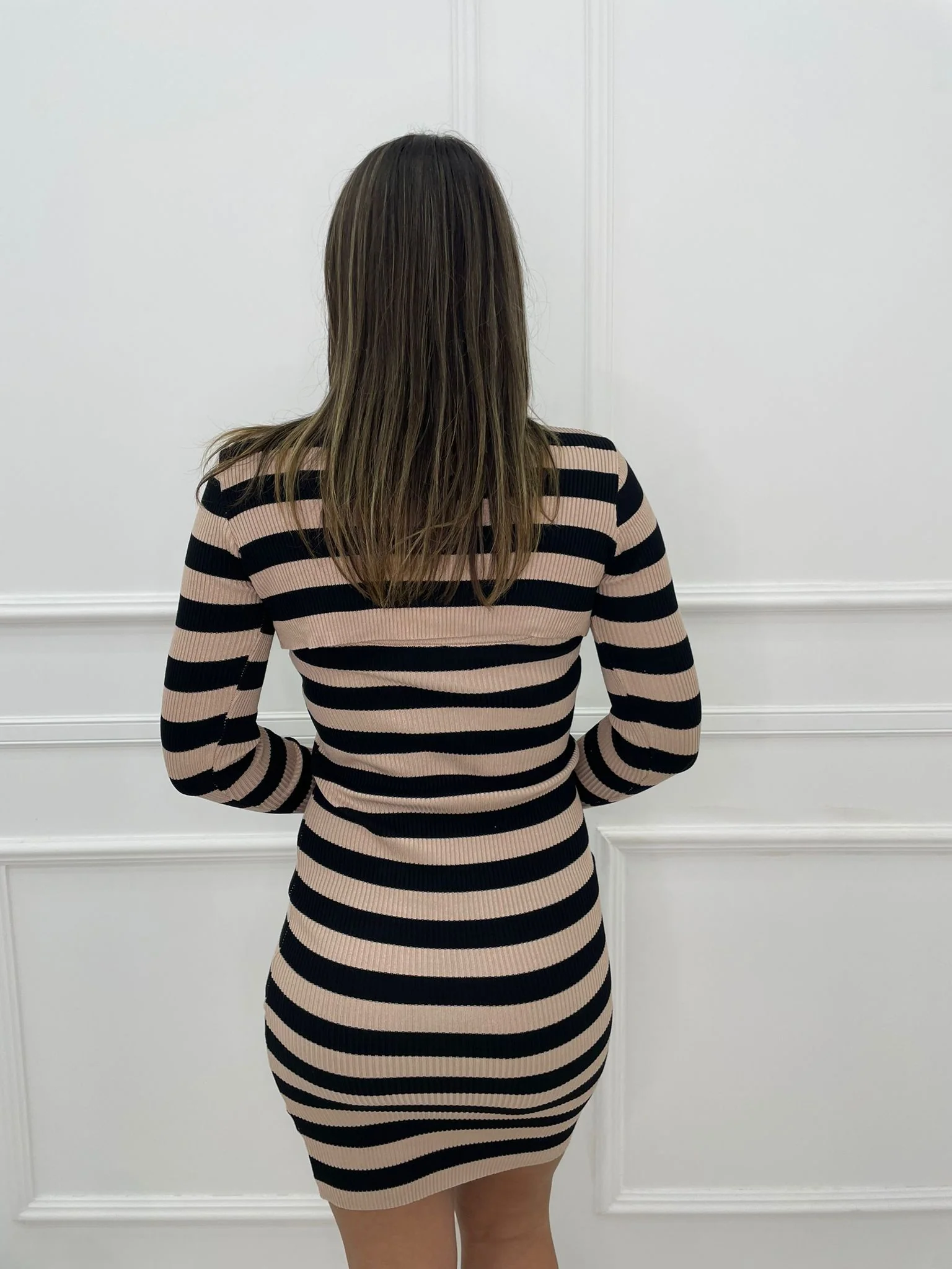 Coordinato 2 pezzi fantasia righe con vestitino e maglia crop