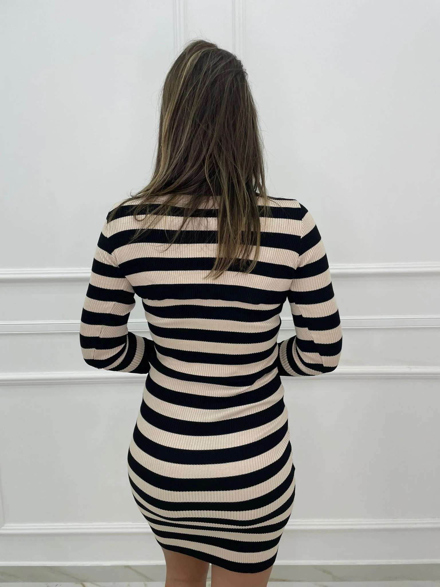 – Coordinato 2 pezzi – Fantasia righe – Maglia crop – Vestitino a bretelline – Elasticizzato – Veste tranquillamente fino ad una taglia “L” – La modella รจ una taglia 44, alta 1,79m – Tessuto: viscosa, cotone, elastan