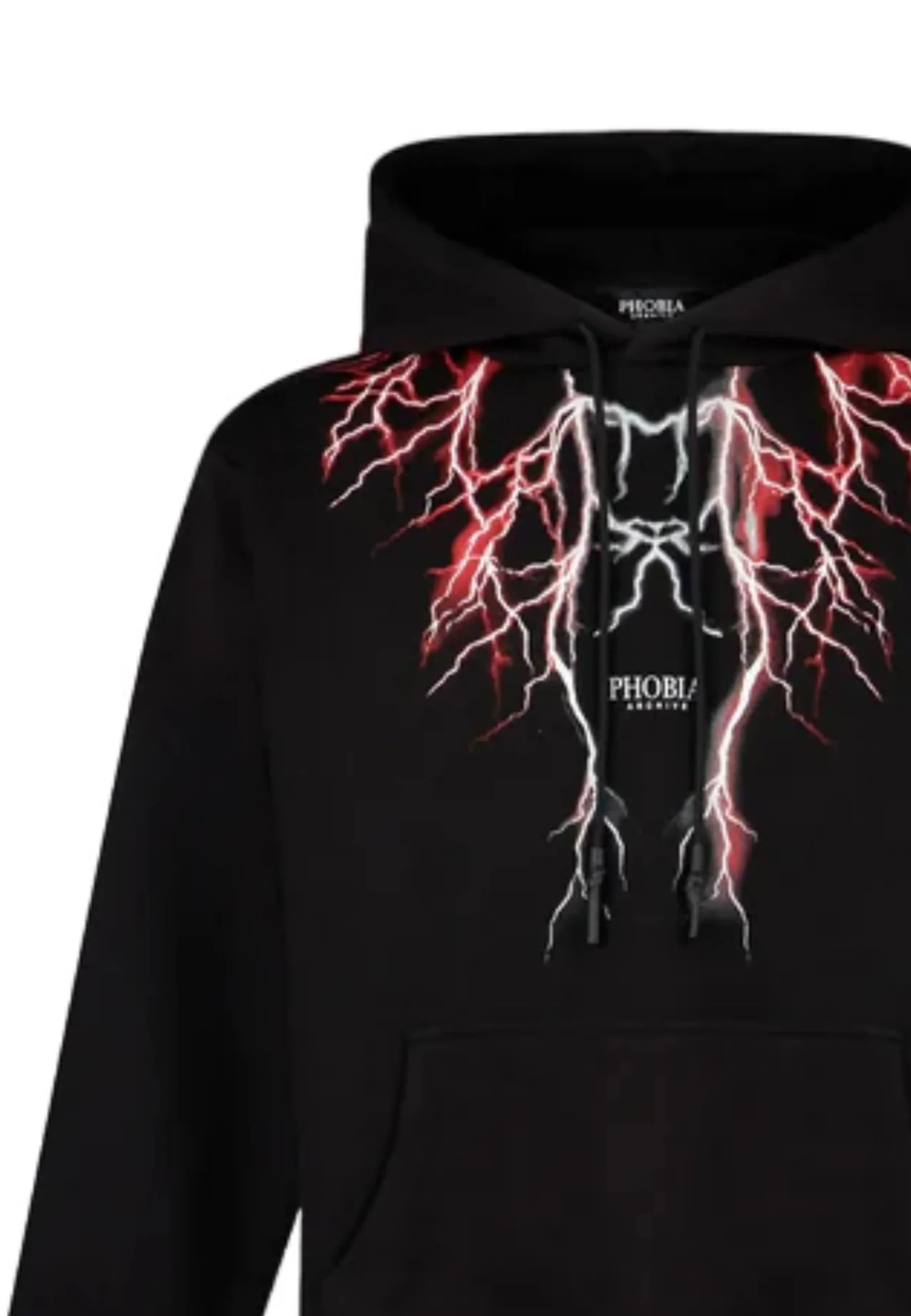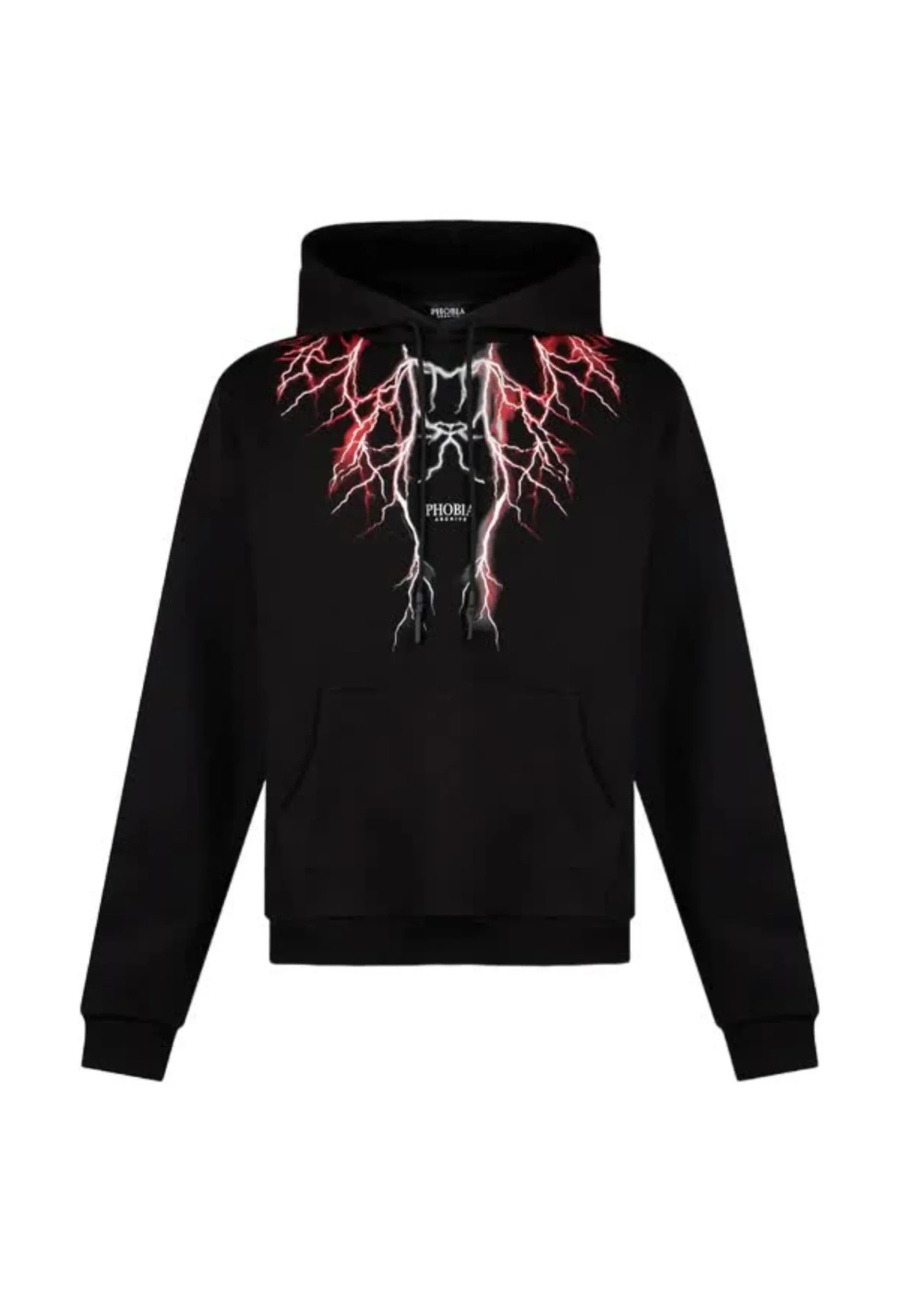 Felpa PHOBIA cappuccio nera stampa fulmini rossi