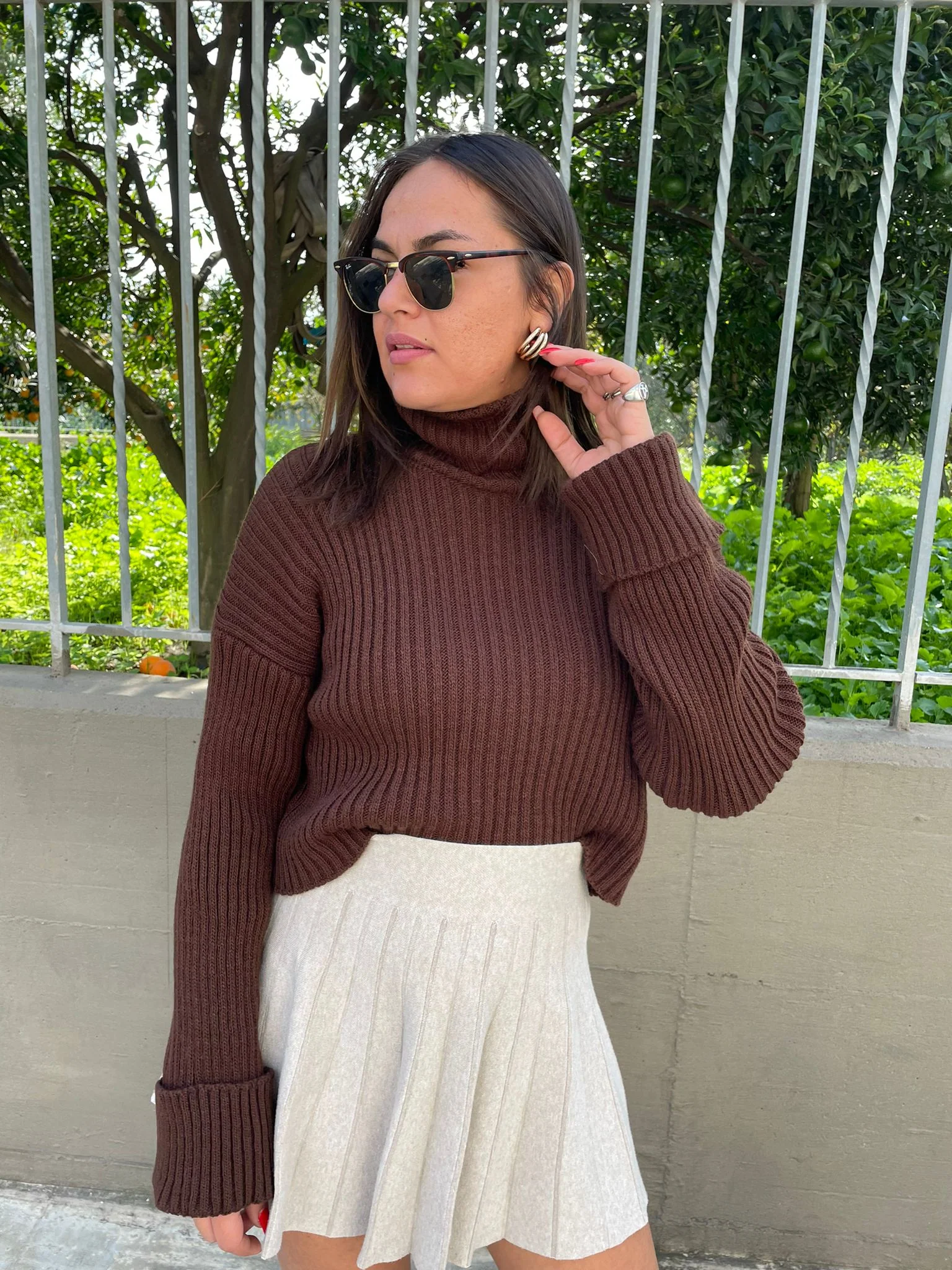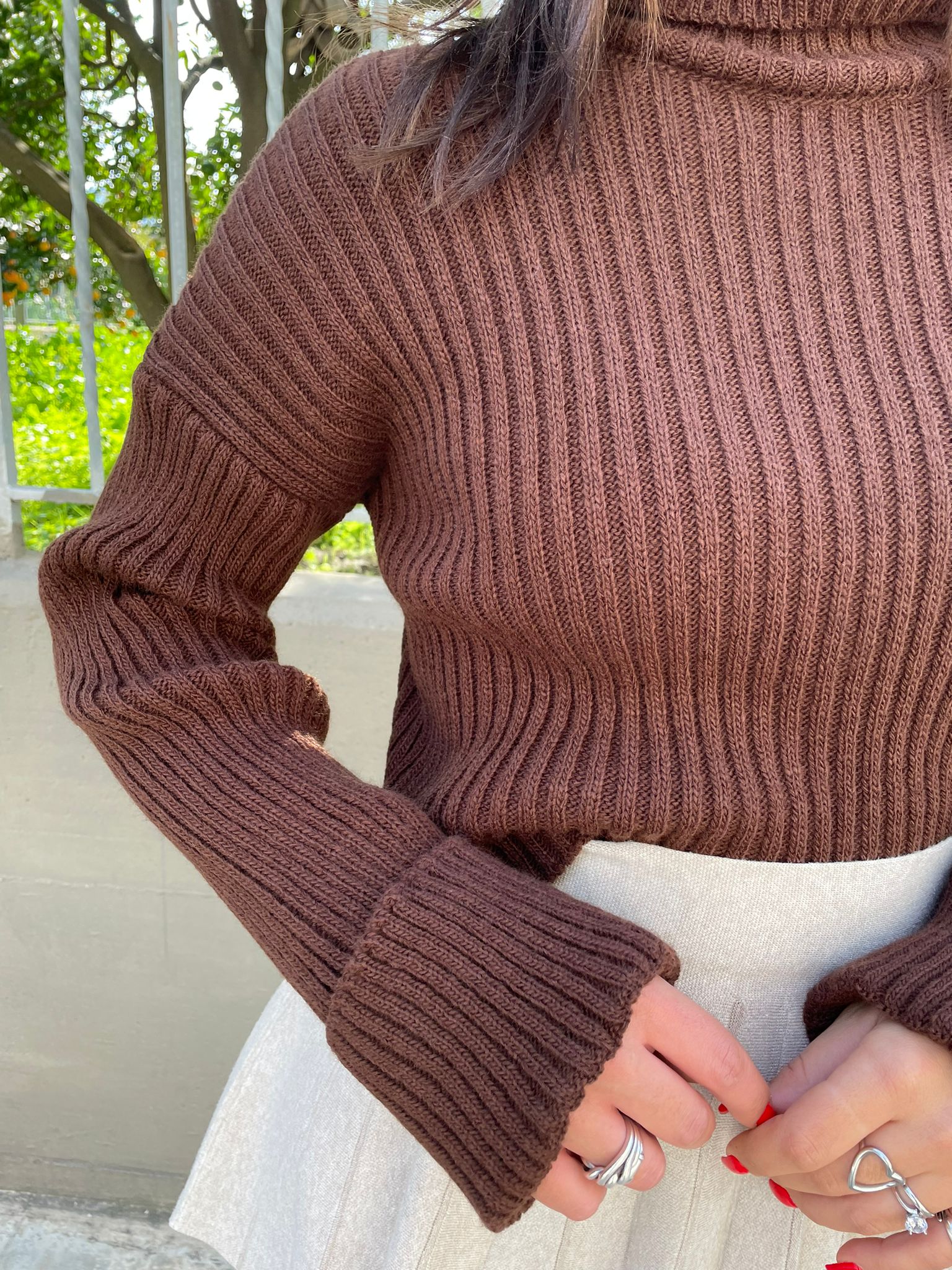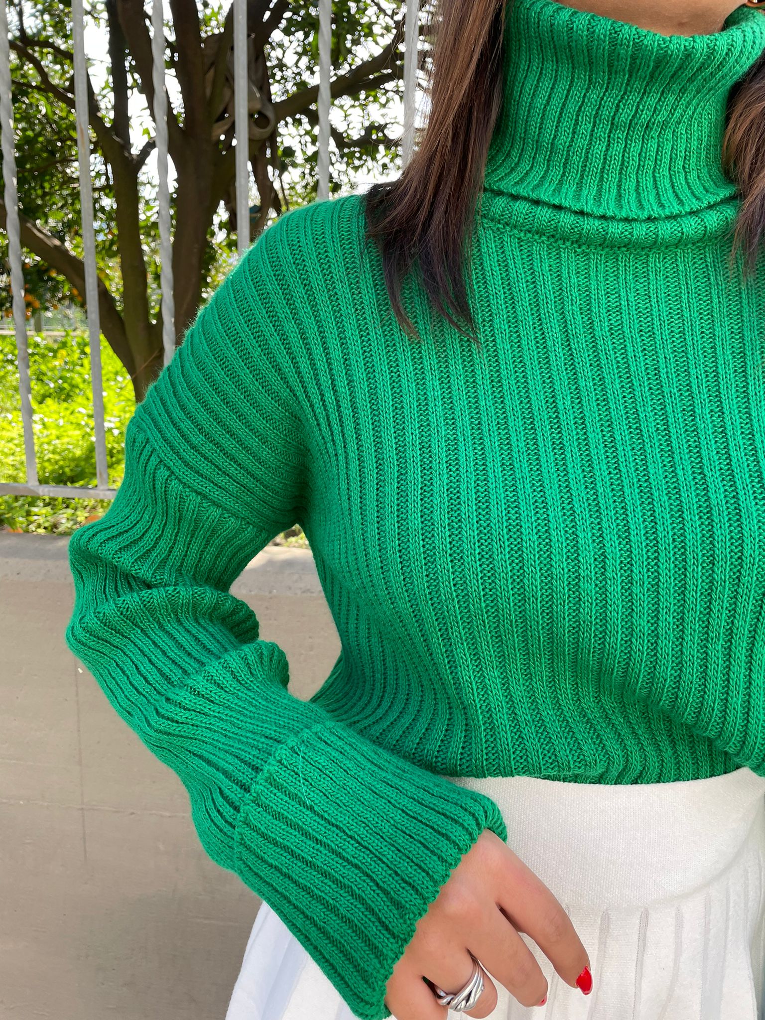 Maglione collo alto con manica con risvolto