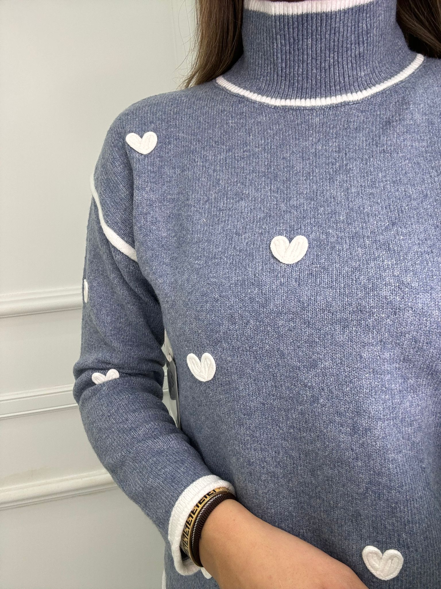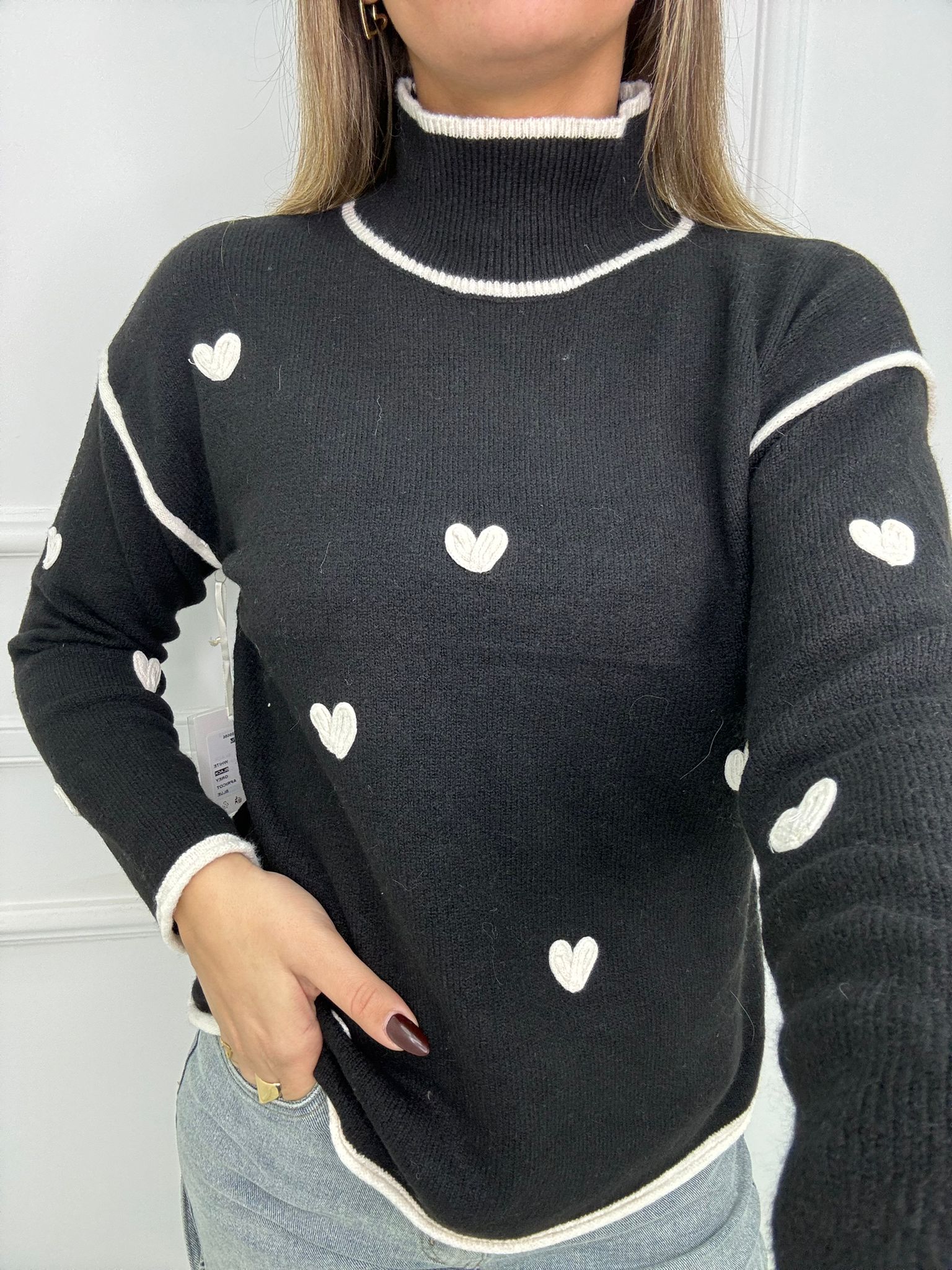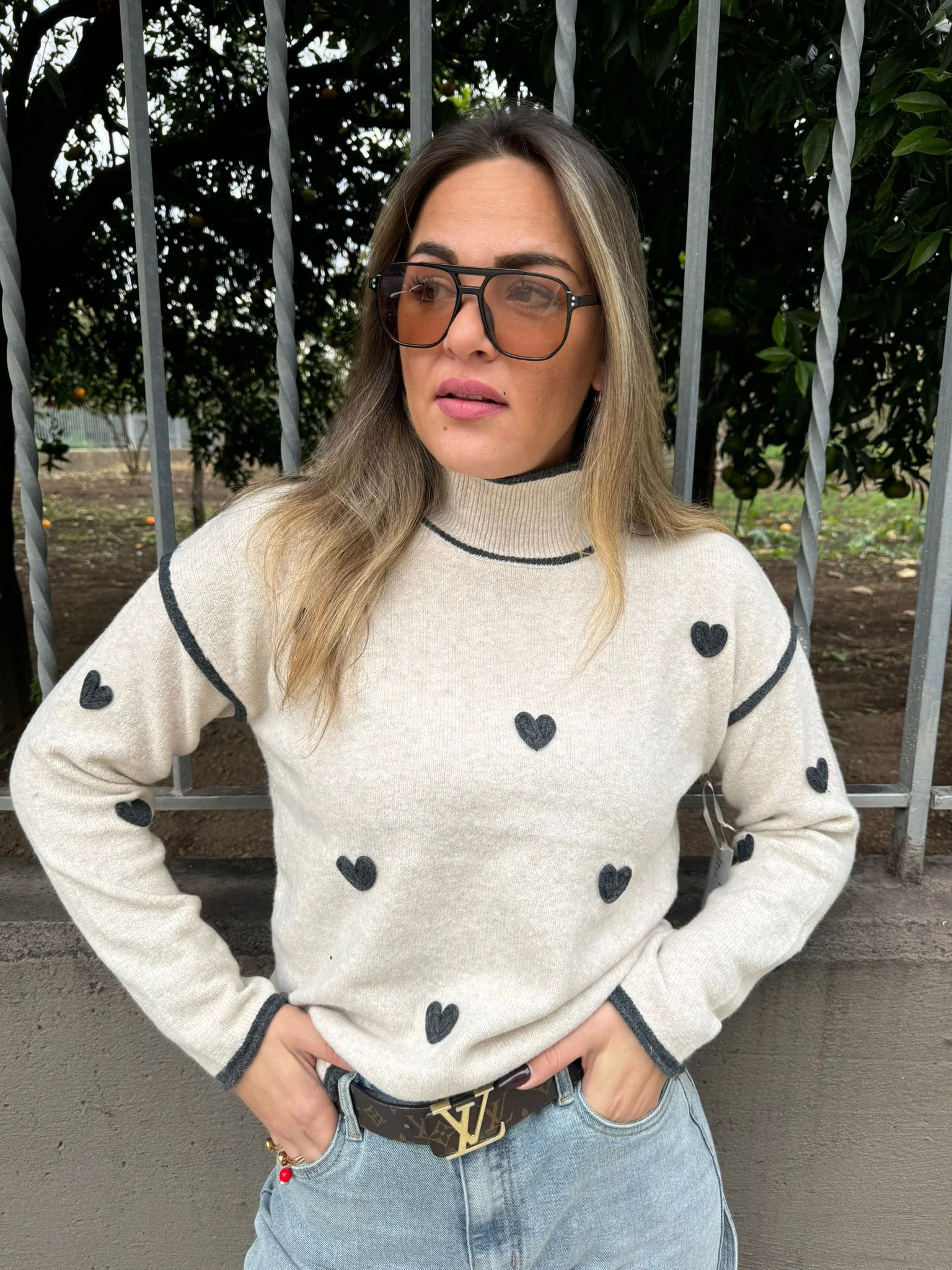 Maglione collo alto Modello over Con cuori Elasticizzato Veste tranquillamente fino ad una taglia “L” Tessuto: viscosa, poliestere, spandex
