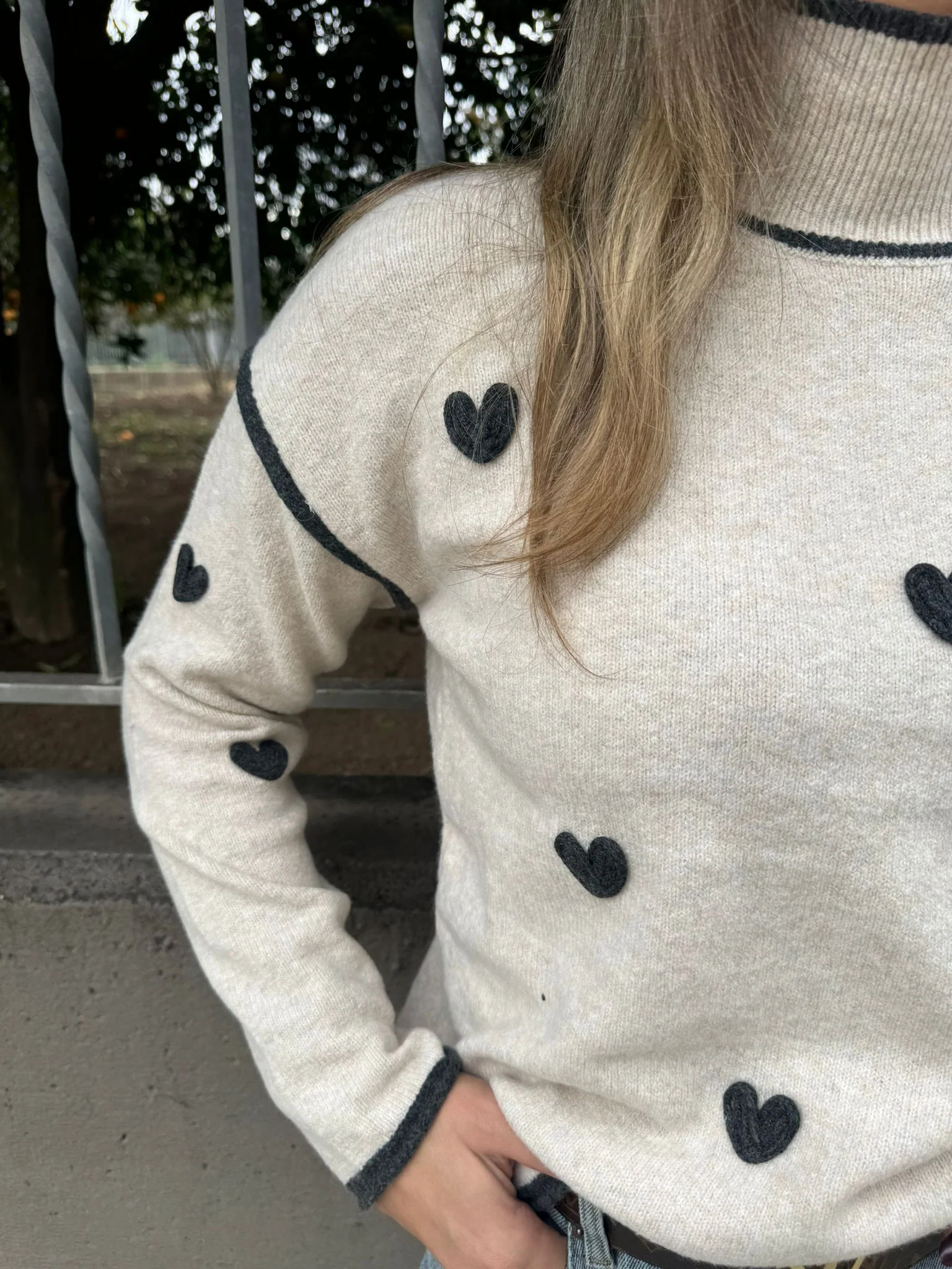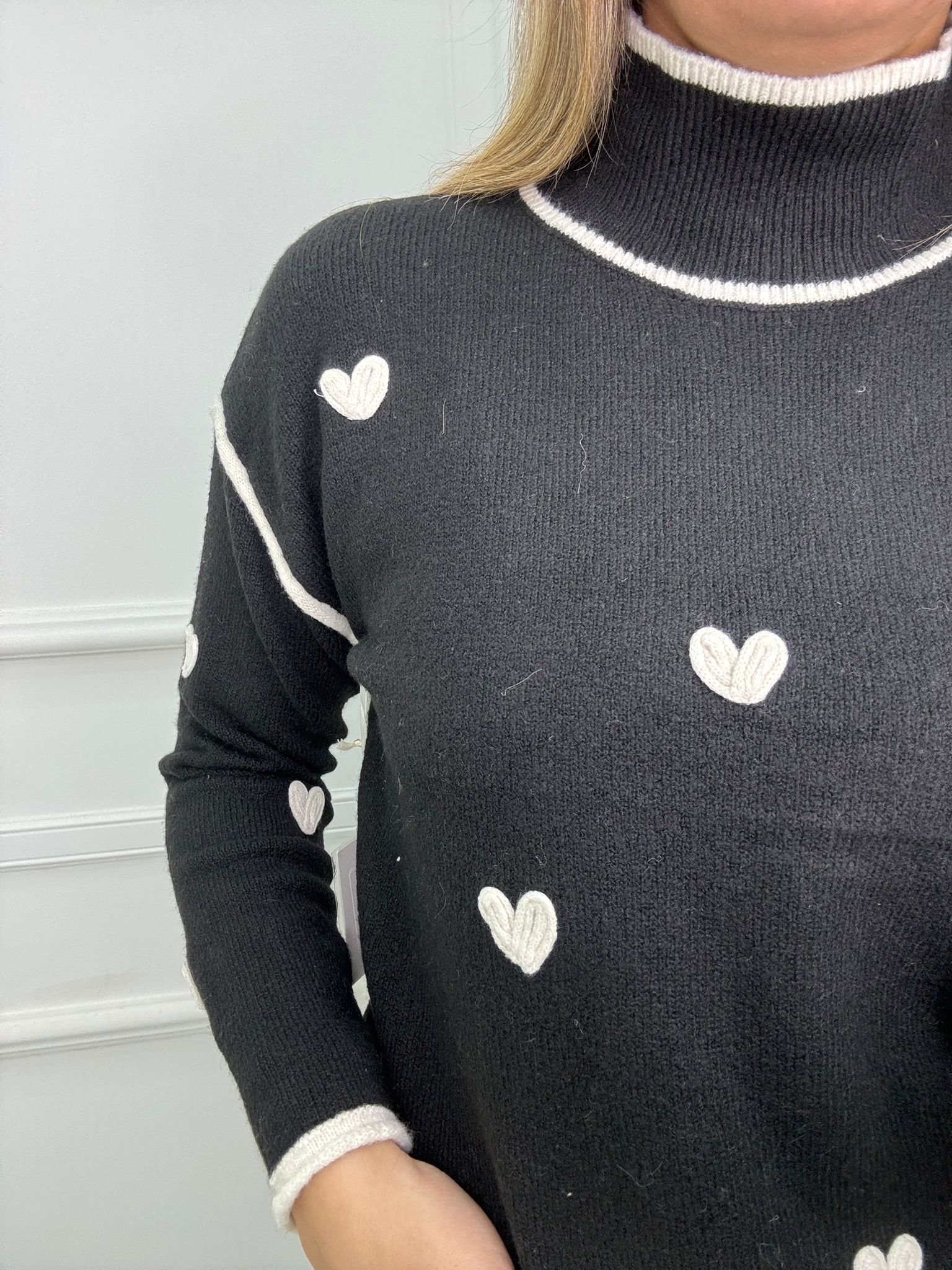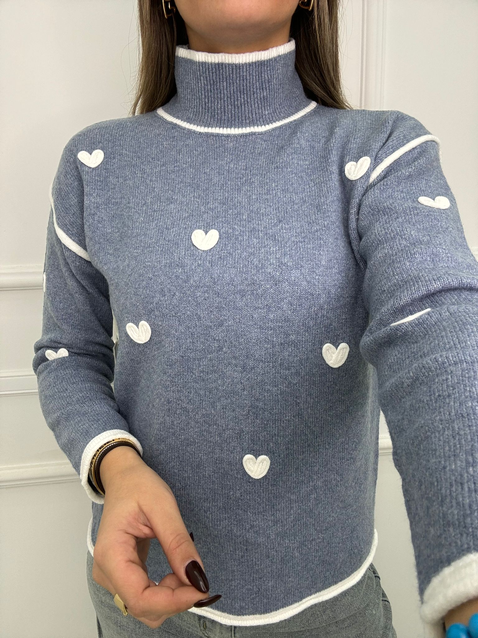 Maglione collo alto Modello over Con cuori Elasticizzato Veste tranquillamente fino ad una taglia “L” Tessuto: viscosa, poliestere, spandex