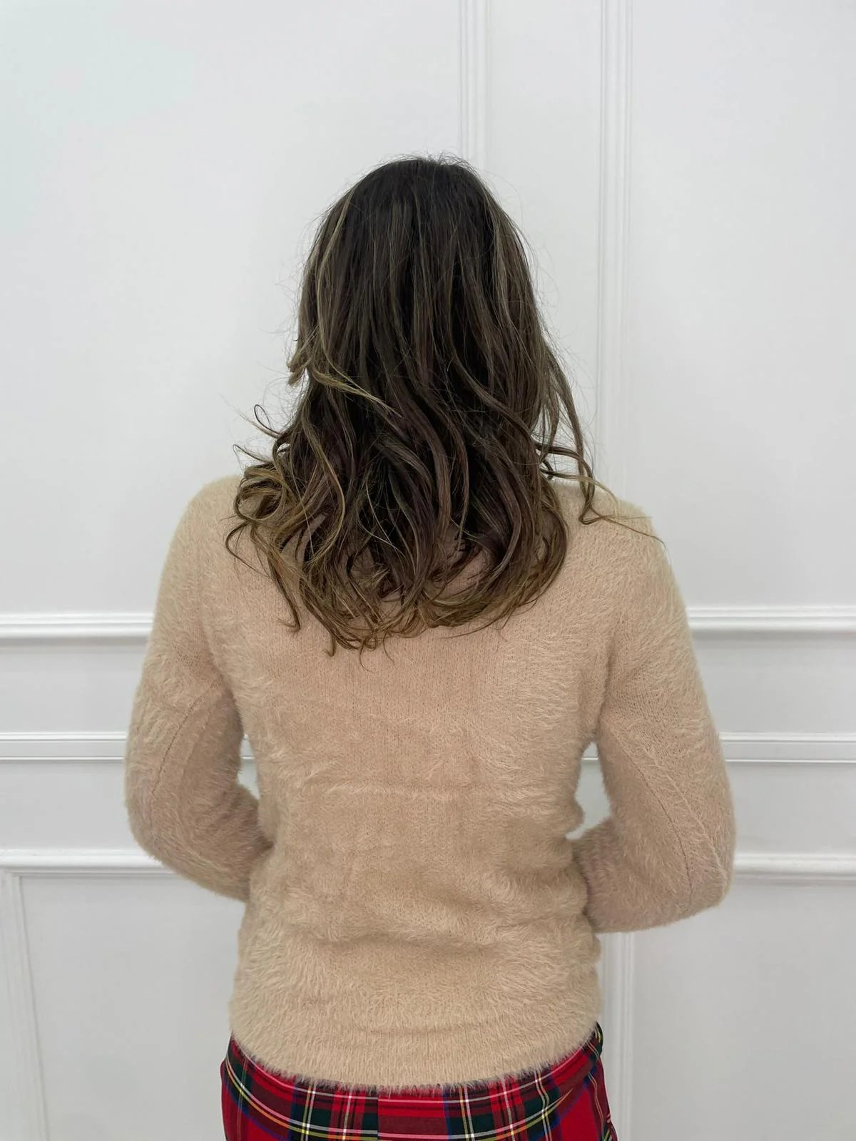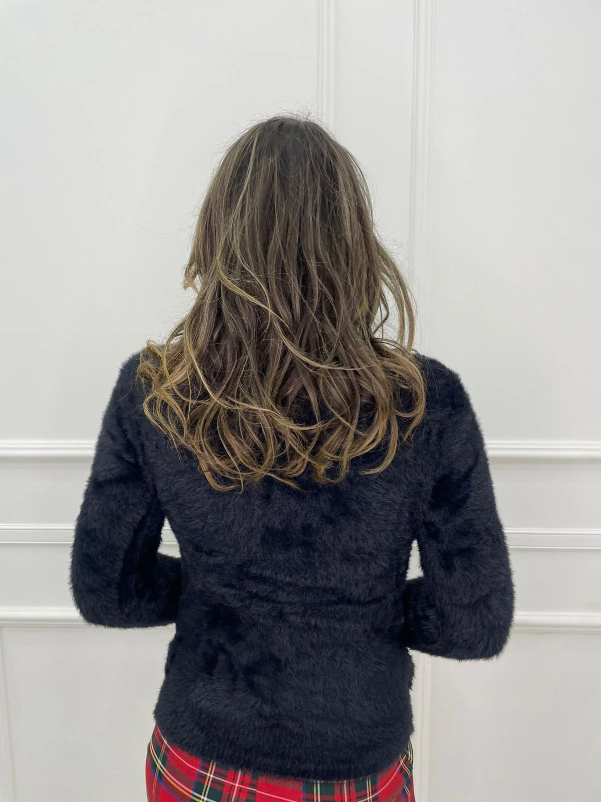 – MAglione tinta unita – In pelo – Collo morbido – Elasticizzato – Veste tranquillamente fino ad una taglia “L” – Tessuto: viscosa, poliamide, elastan