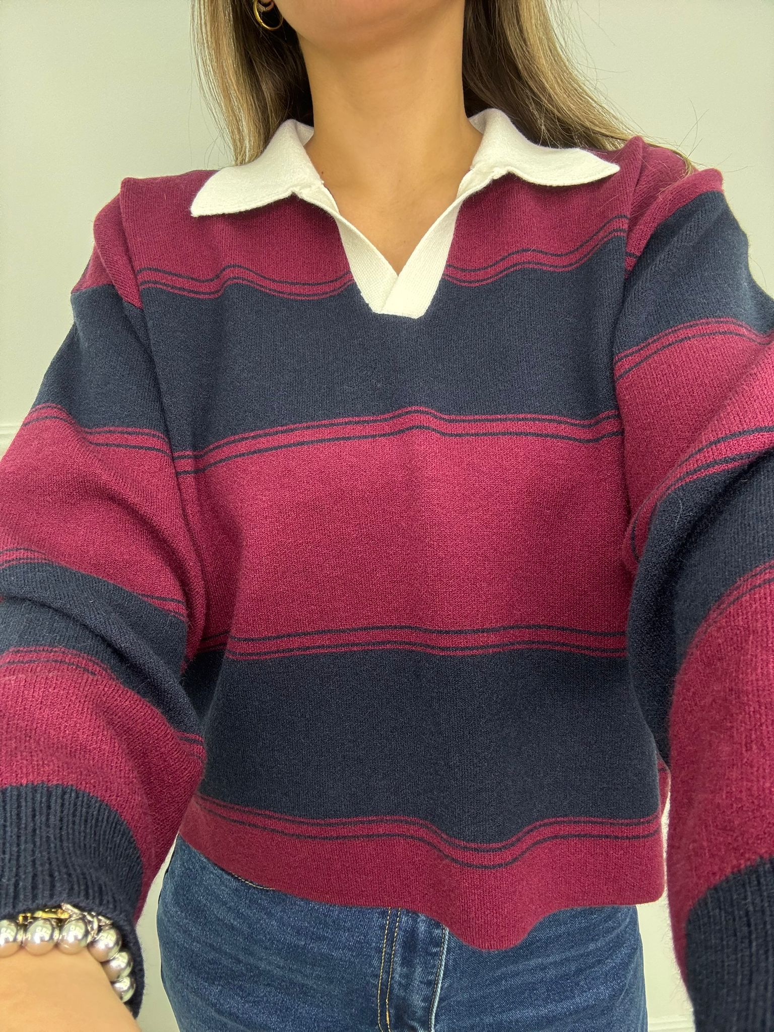 Maglione modello polo fantasia righe