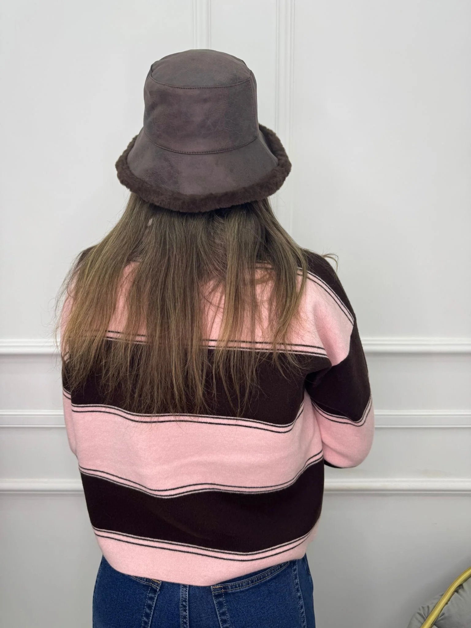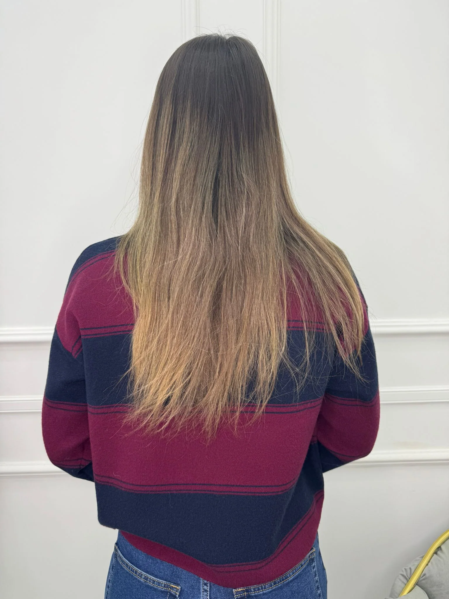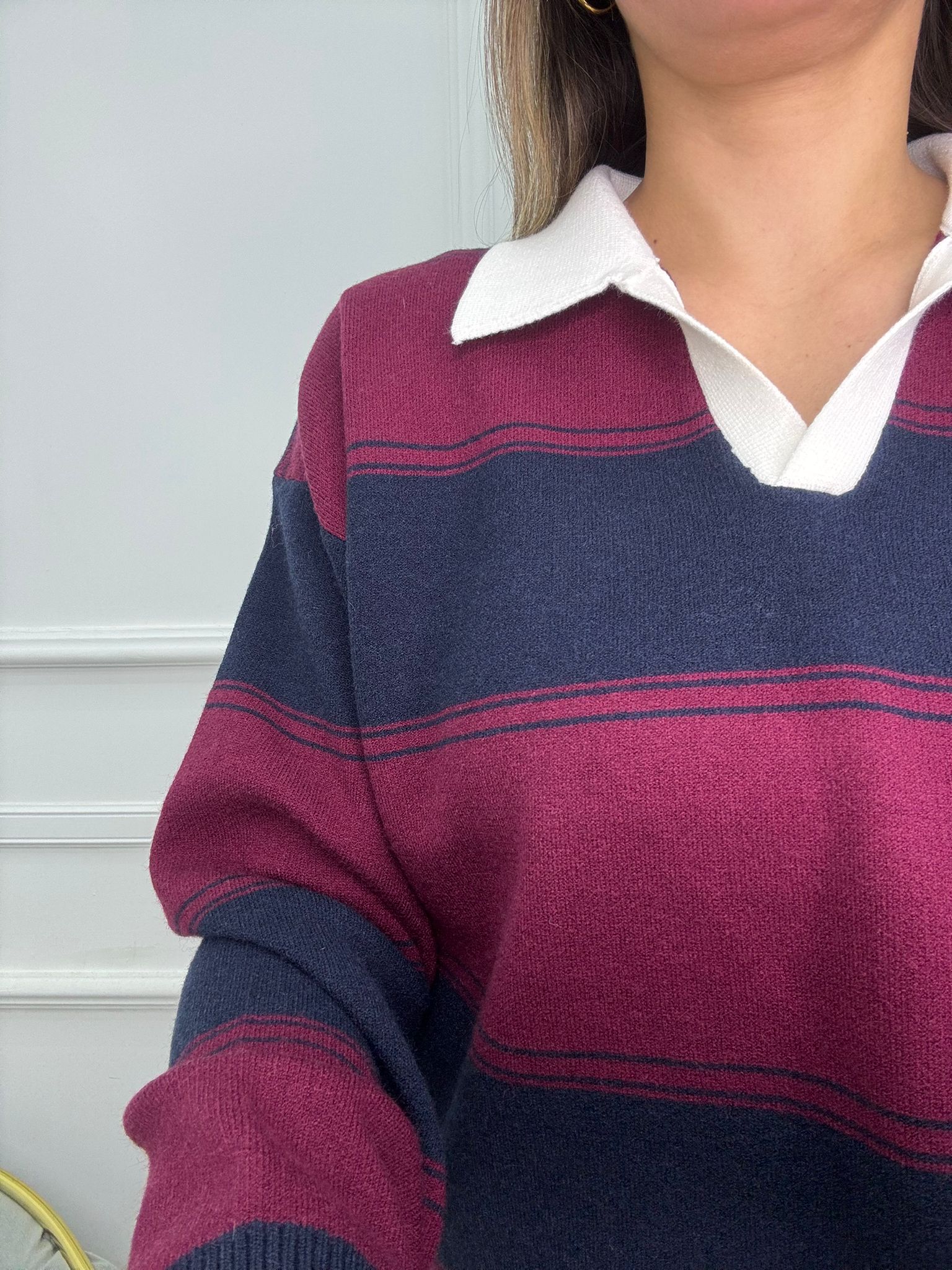 Maglione over Modello polo FAntasia a righe Elasticizzato Veste tranquillamente fino ad una taglia “L”