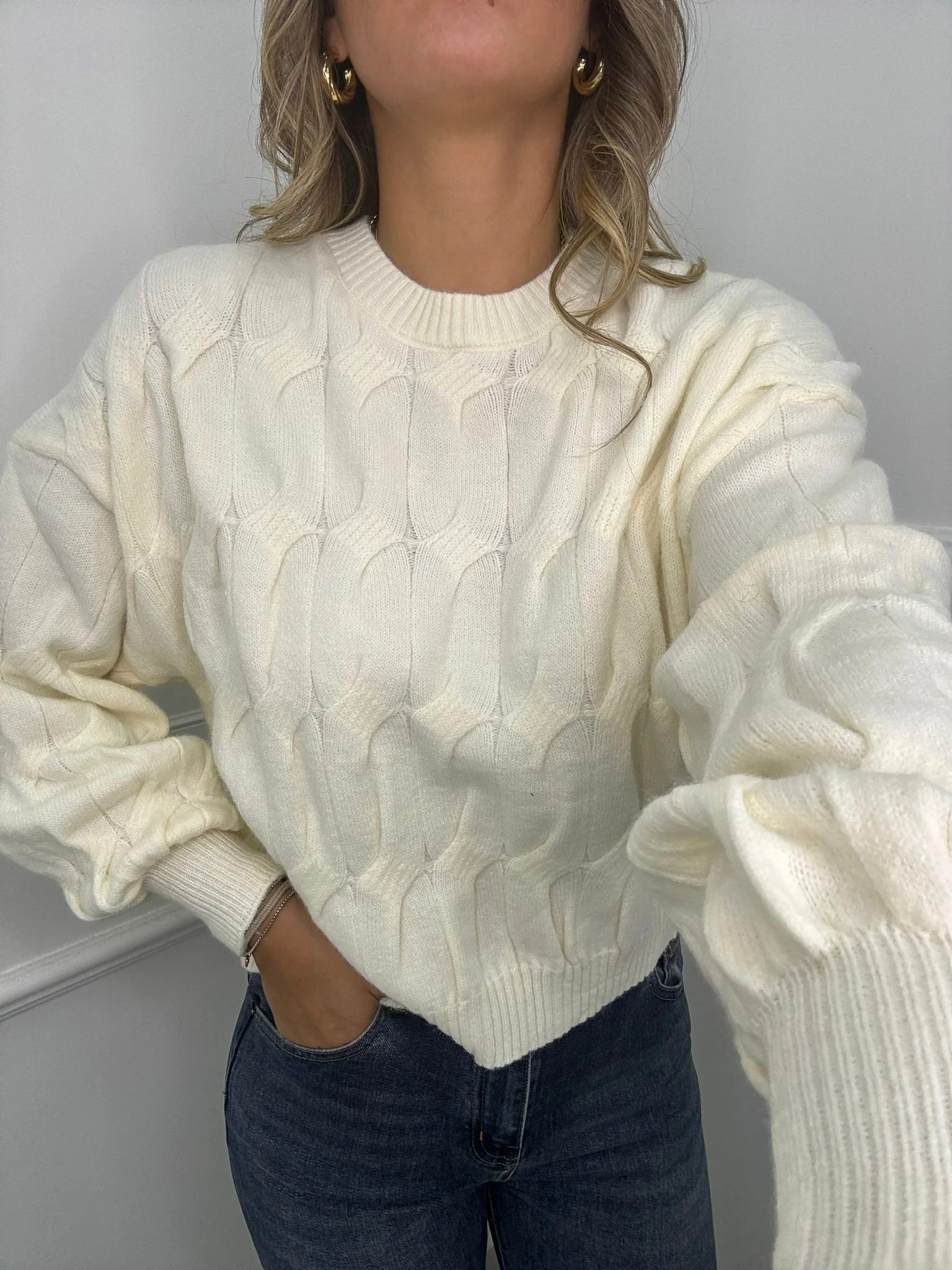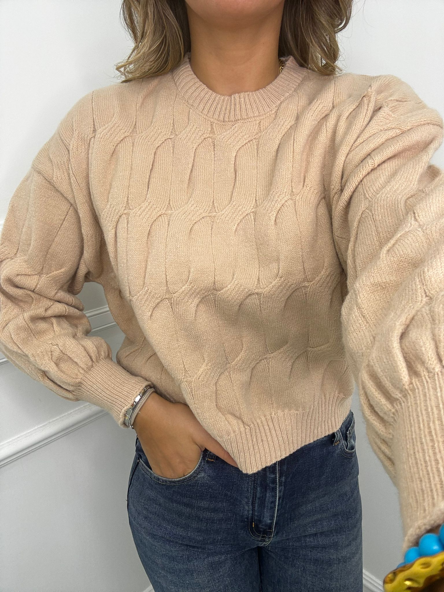 Recensisci per primo “Maglione trama treccia con maniche a sbuffo”