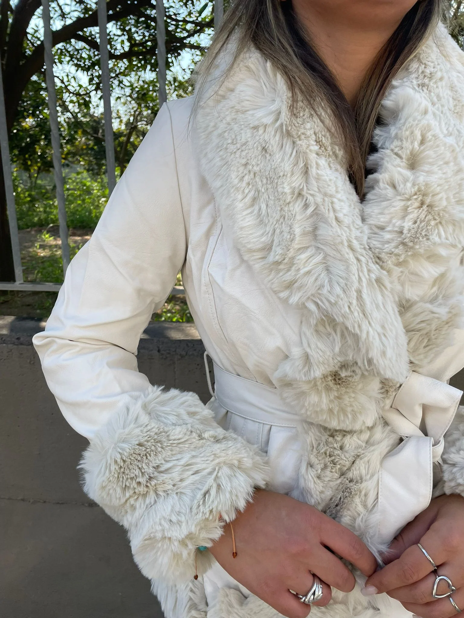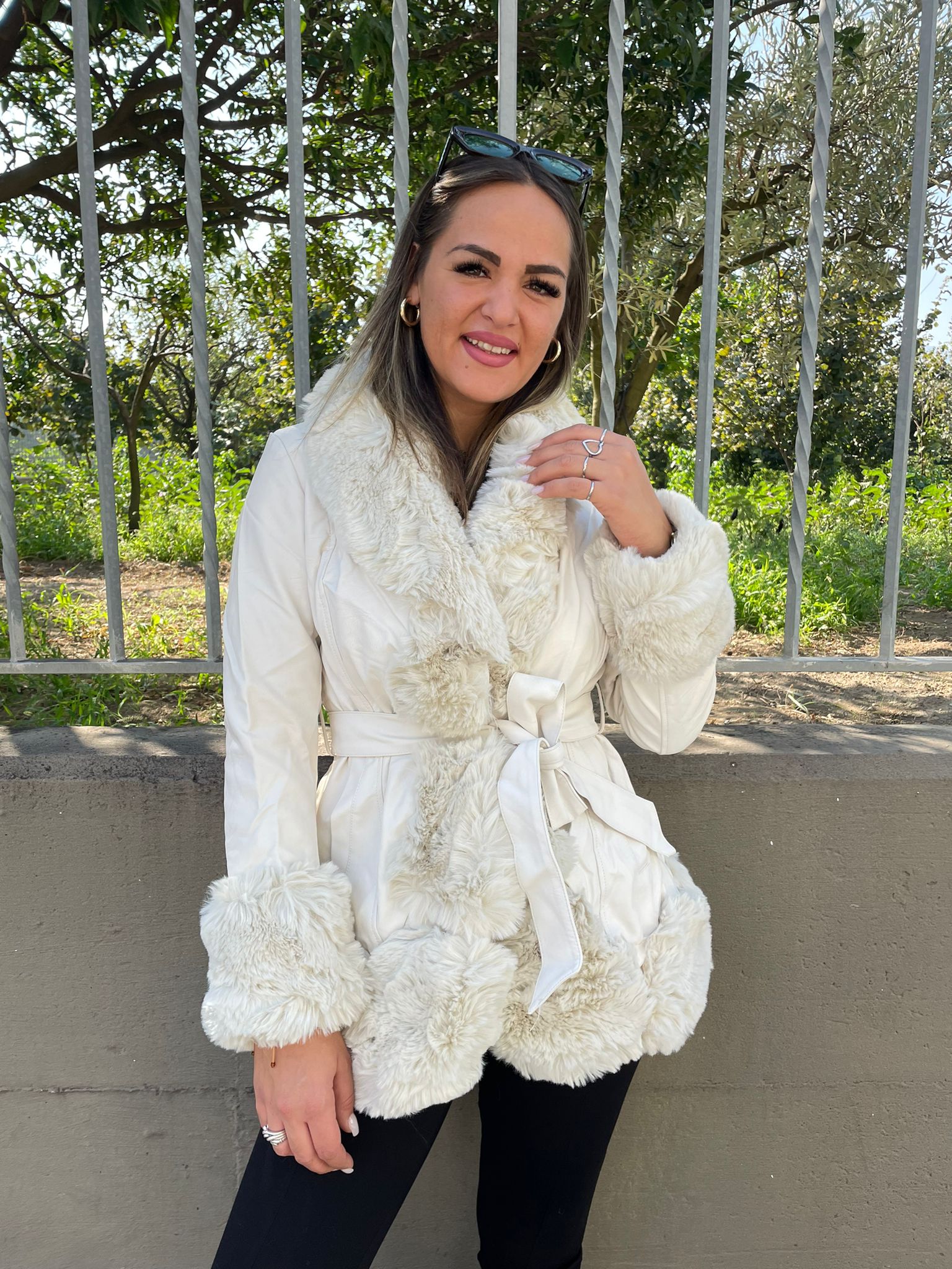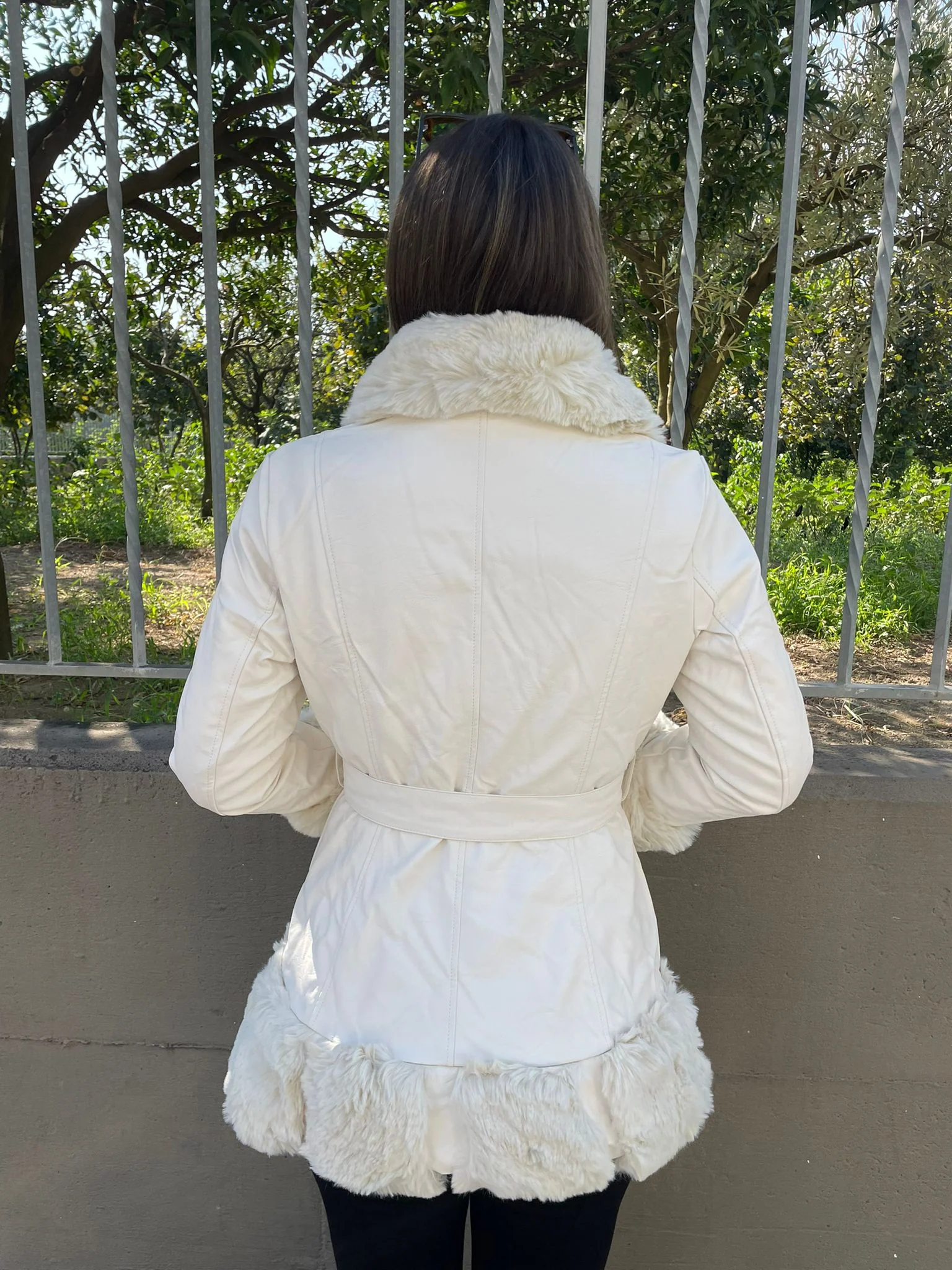 Pelliccia eco bianca con cintura