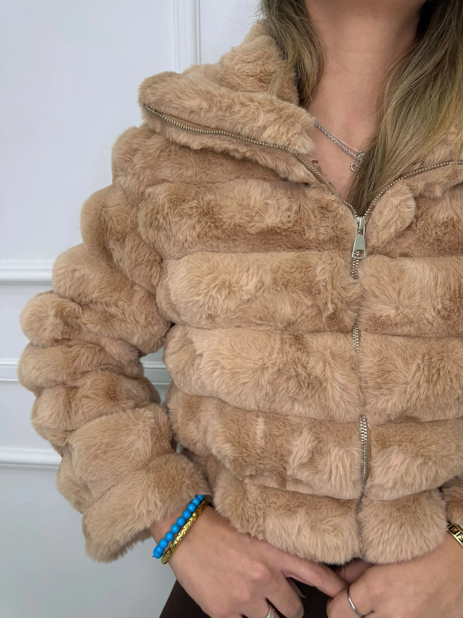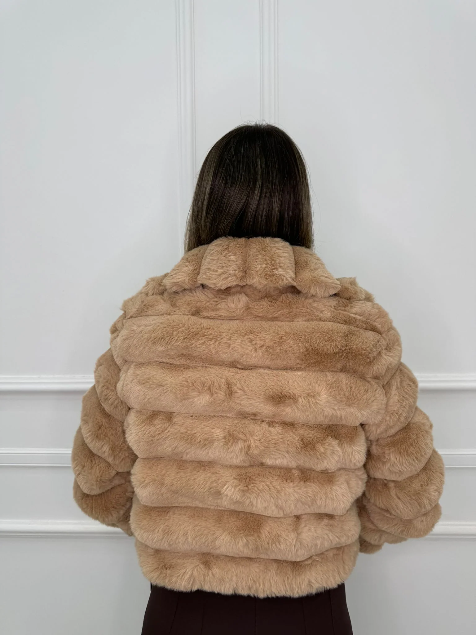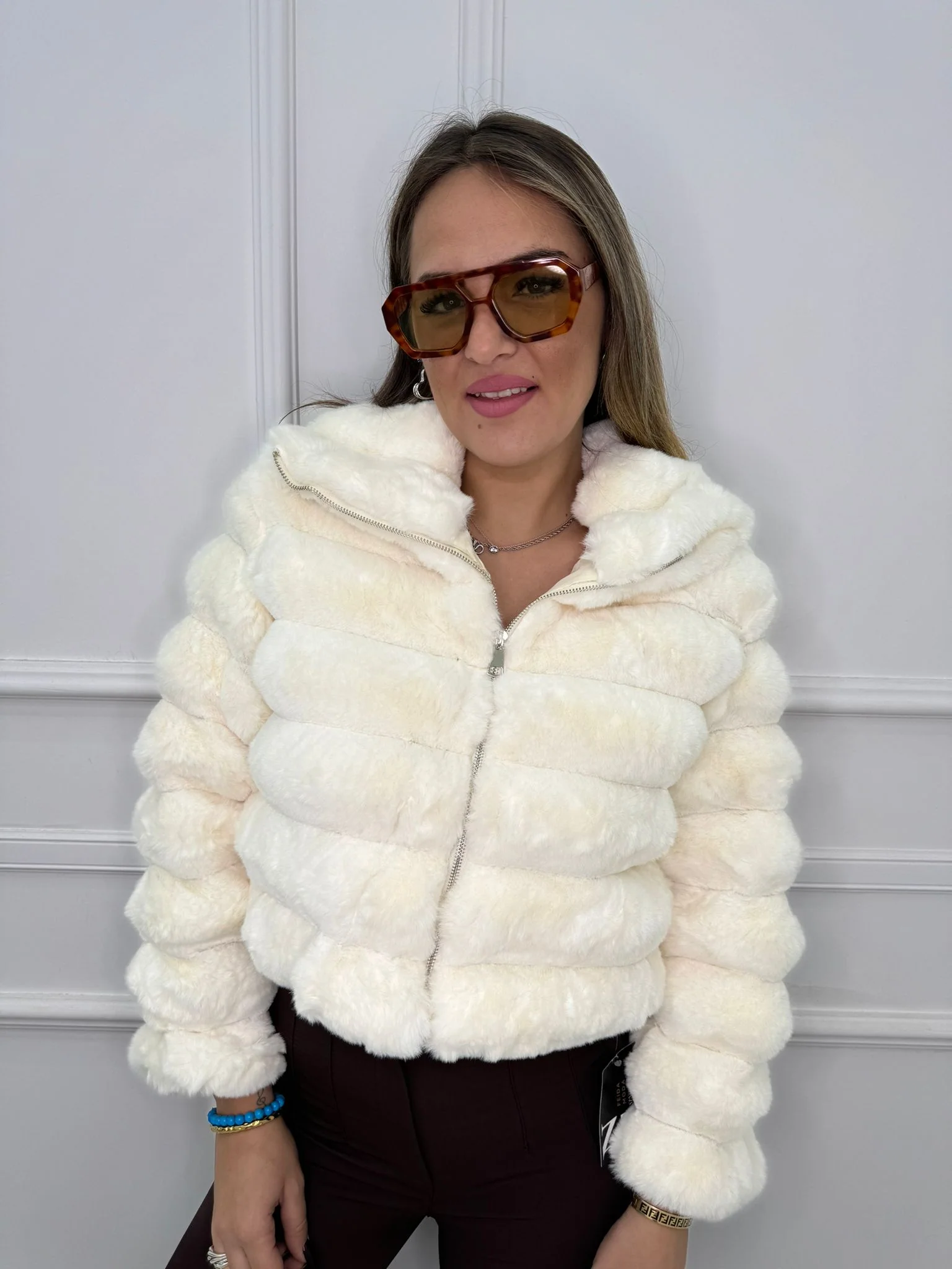 Pelliccia eco tinta unita Con zip avanti Vestibilitร regolare La modella รจ una taglia 44, 4^ di seno e indossa la taglia “M/L”