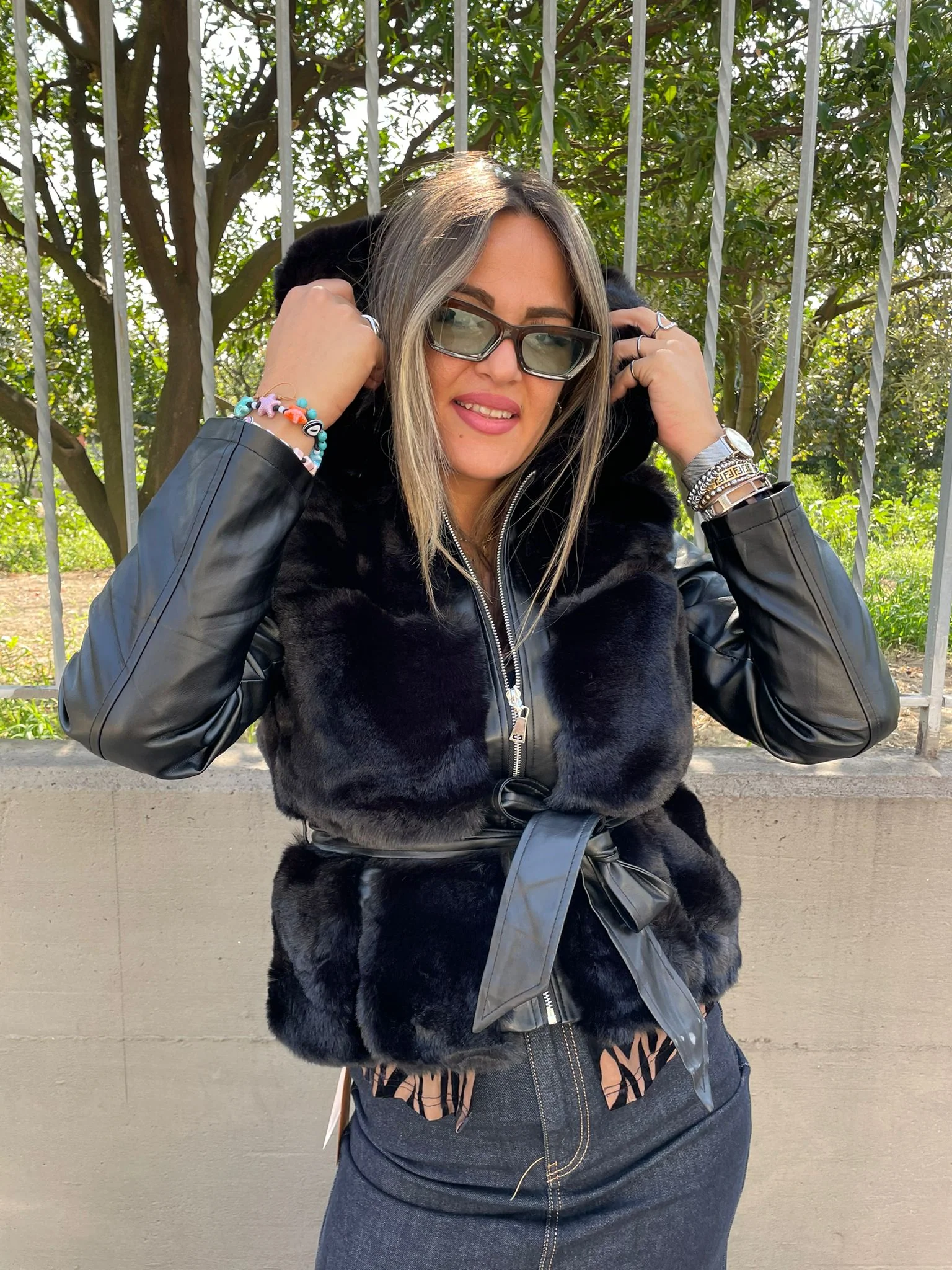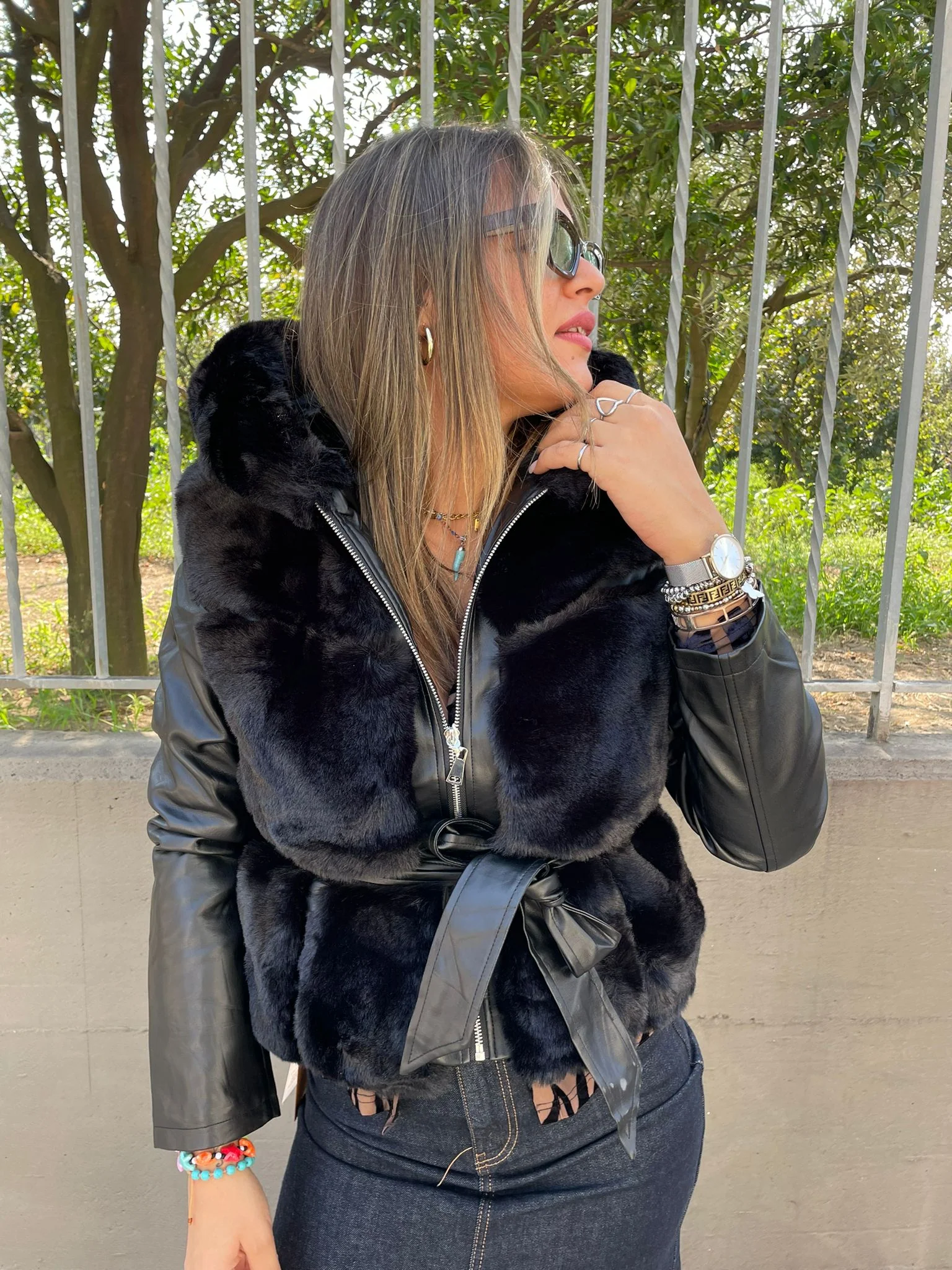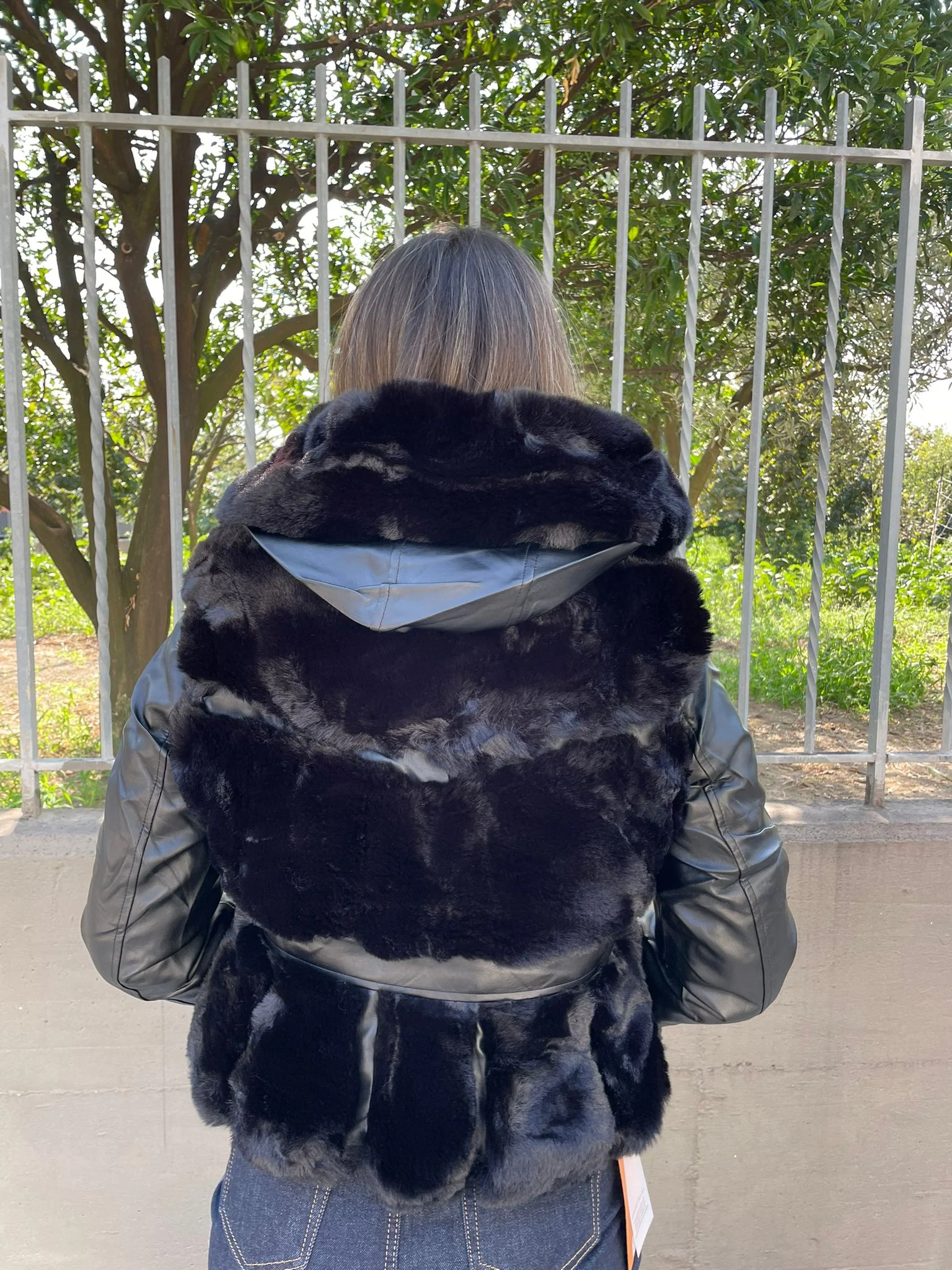 Pelliccia nera con maniche eco pelle