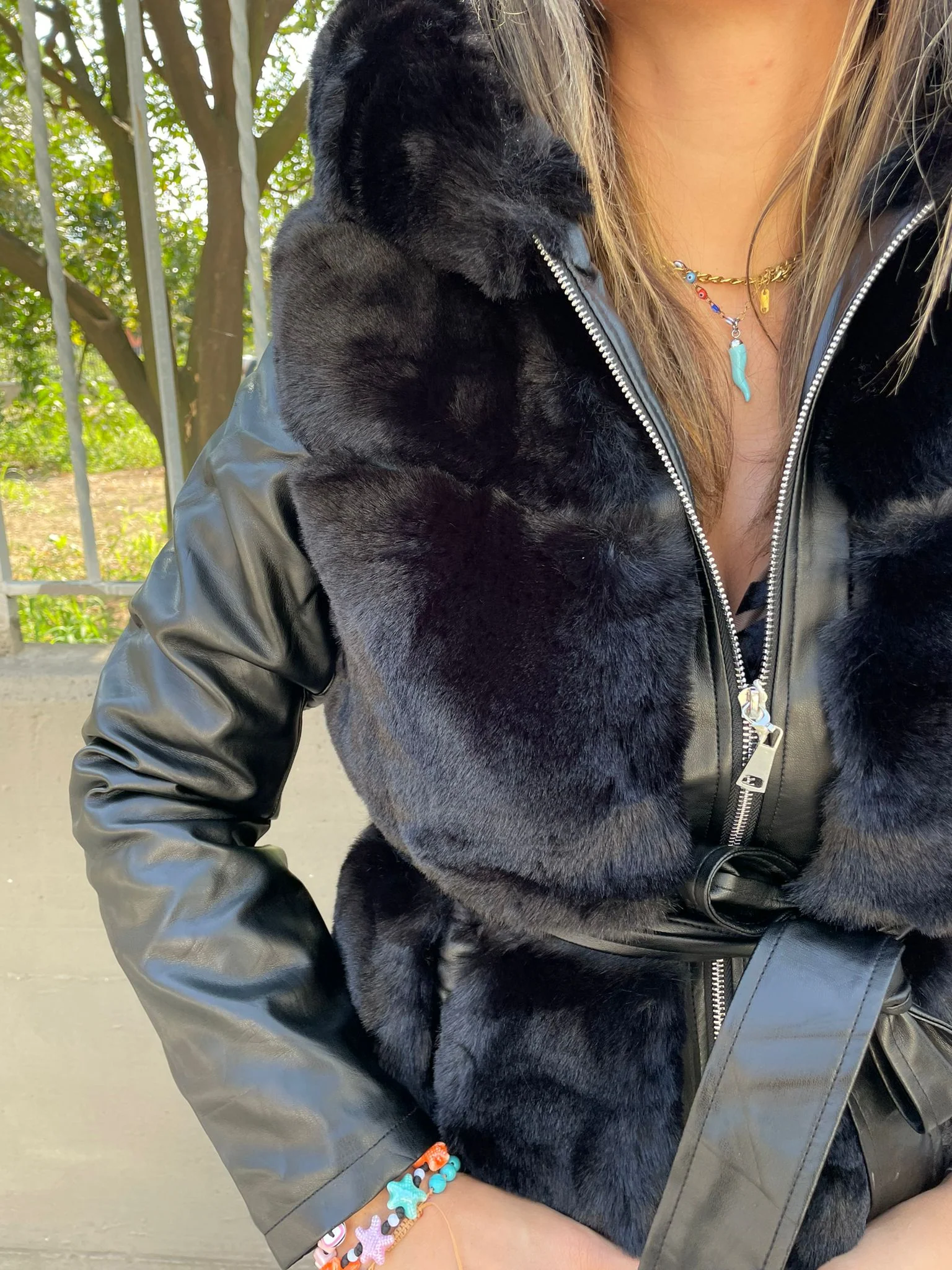 – Pelliccia eco nera – Maniche in eco pelle – Zip avanti – Pelliccia interna – Vestiblitร regolare – La modella รจ una taglia 44, alta 1,79m e indossa la taglia “L”
