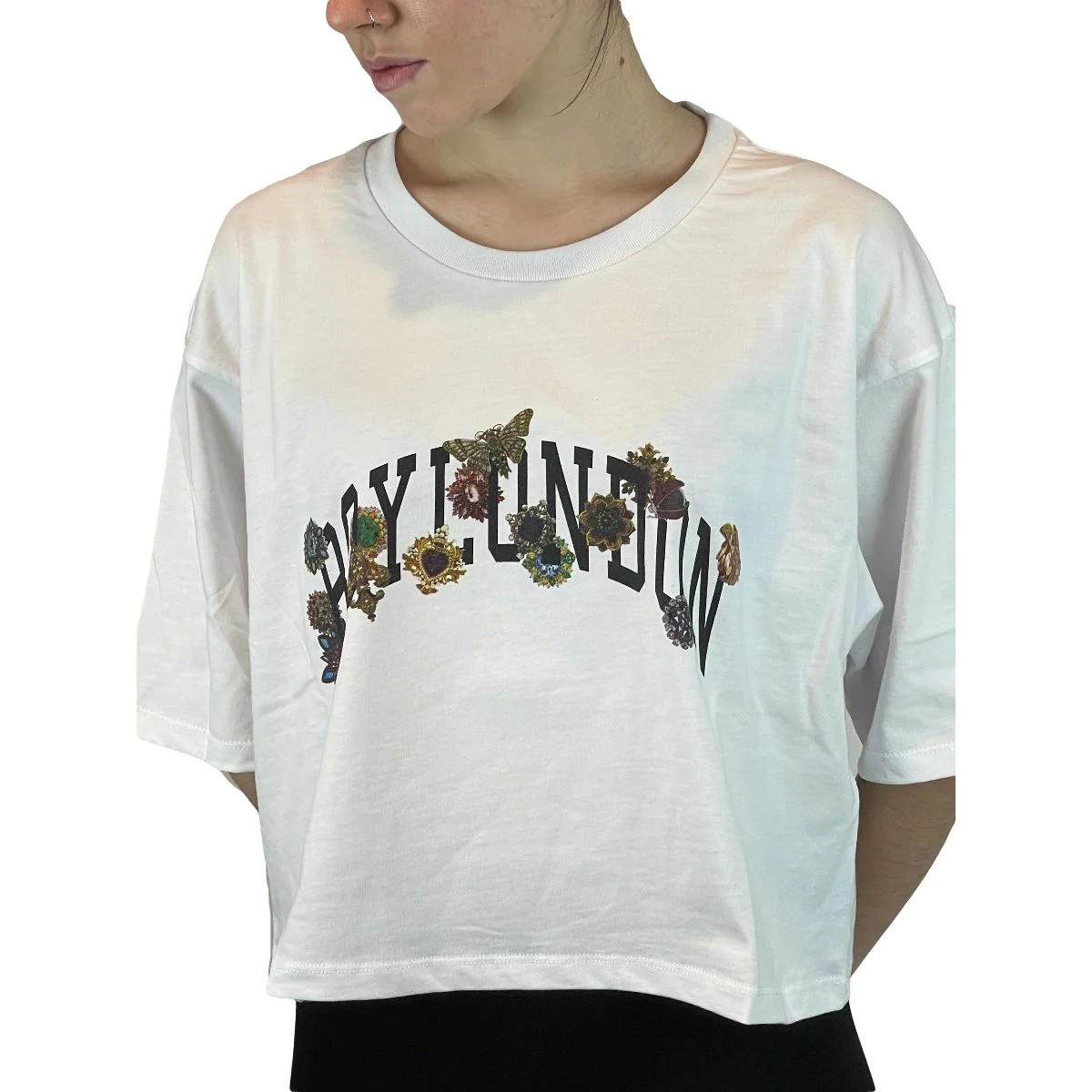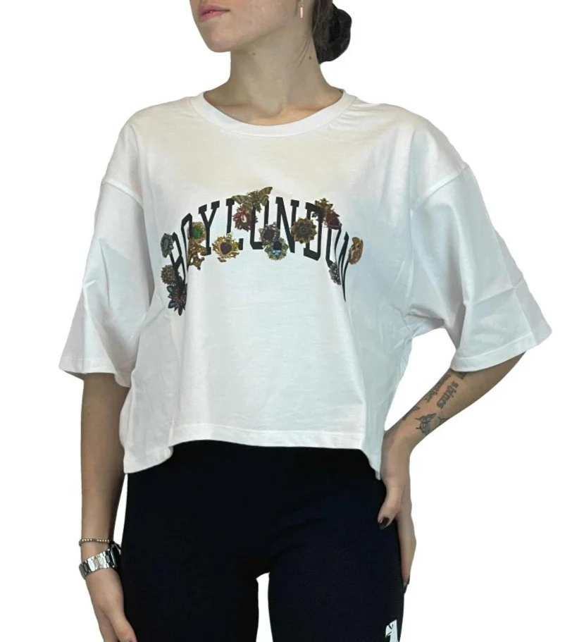 T-shirt corta donna BOY LONDON stampa bianco