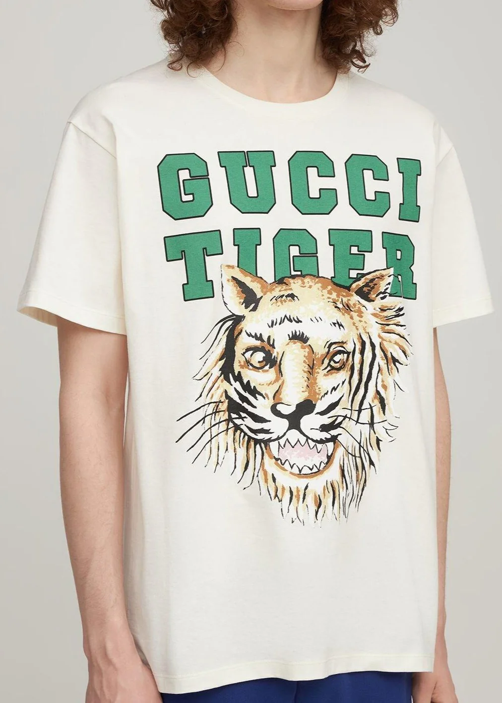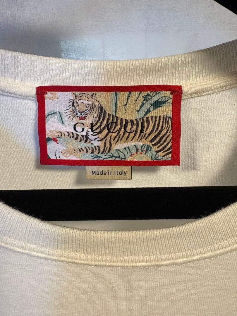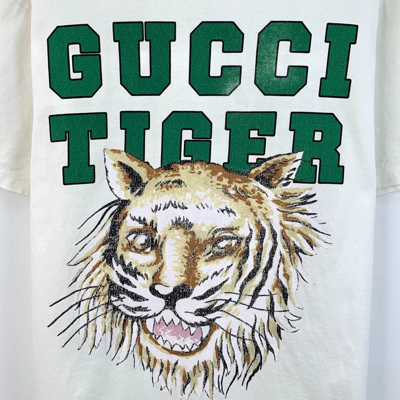 T-shirt GUCCI unisex stampa logo Tiger large fit bianco milk