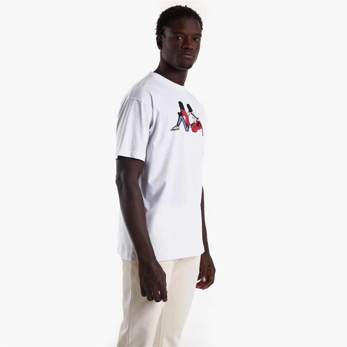 T-shirt unisex in jersey. REGULAR FIT. Grafica stampata sul davanti, dettaglio con banda jacquard sulla manica.
