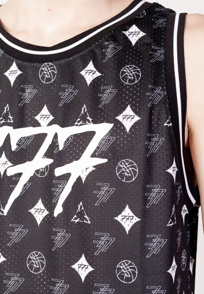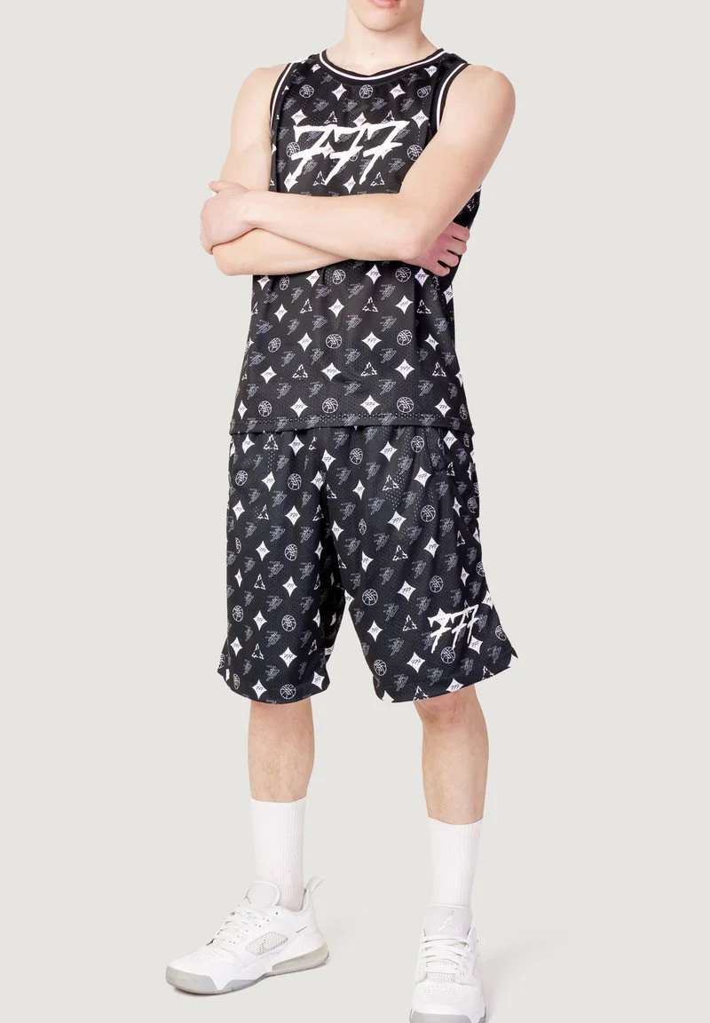 Tony Effe Completino estivo TRIPLOSETTE 777 canotta + bermuda in rete stampa microfile nero