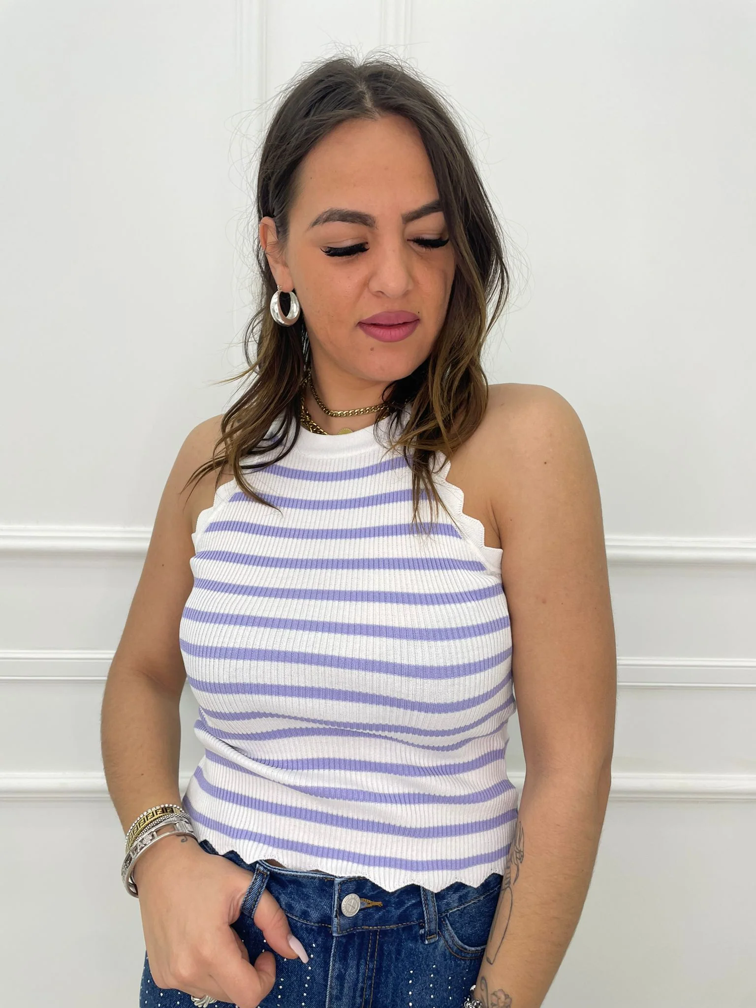 Top a costine con scollo all’ americana