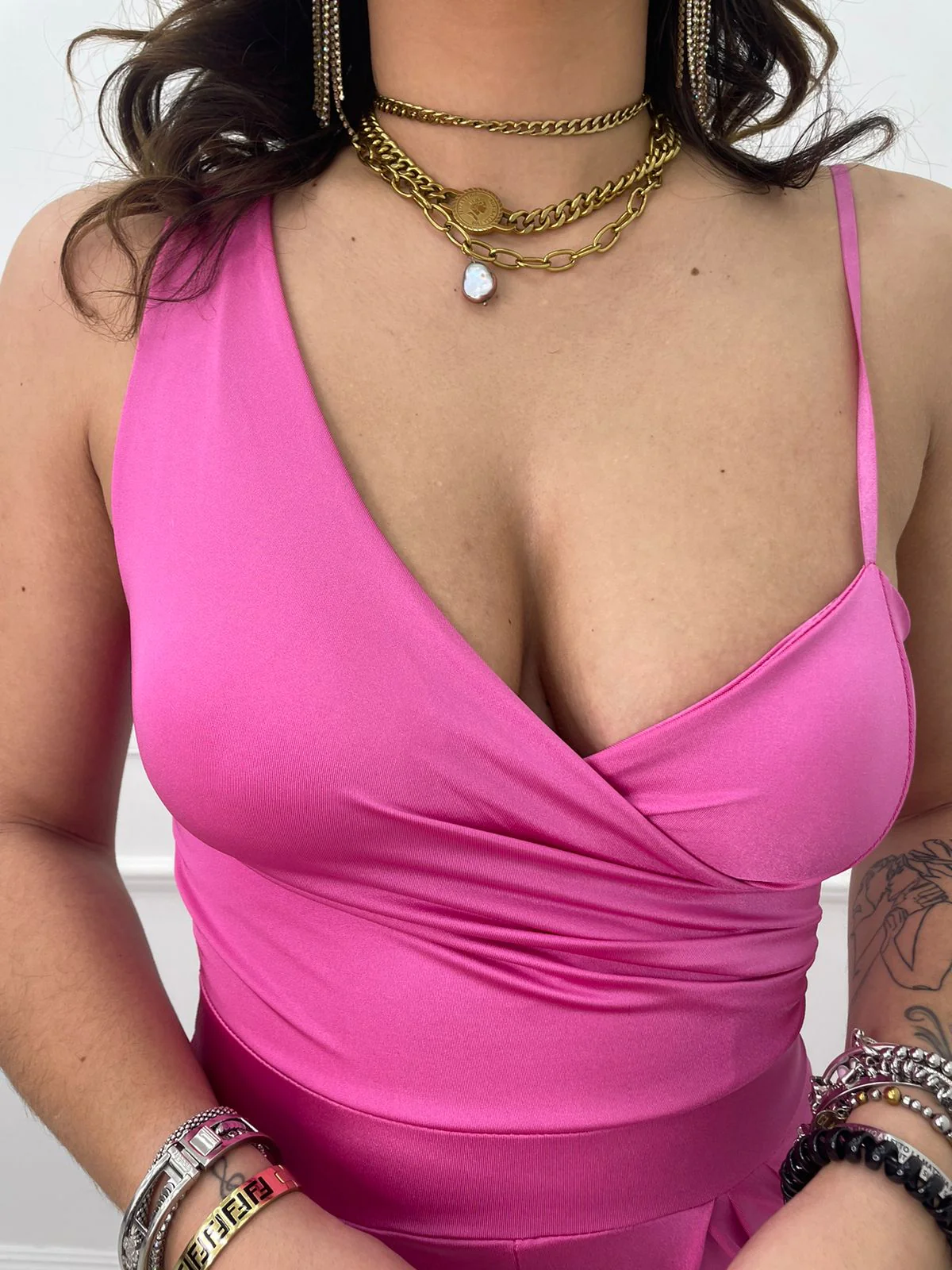 – Tuta intera tinta unita – Bratellina regolabile – Coppette al seno – Elasticizzato – Veste tranquillamente fino ad una taglia “L” – La modella รจ una taglia 44, alta 1,79m – Tessuto: poliestere, elastan