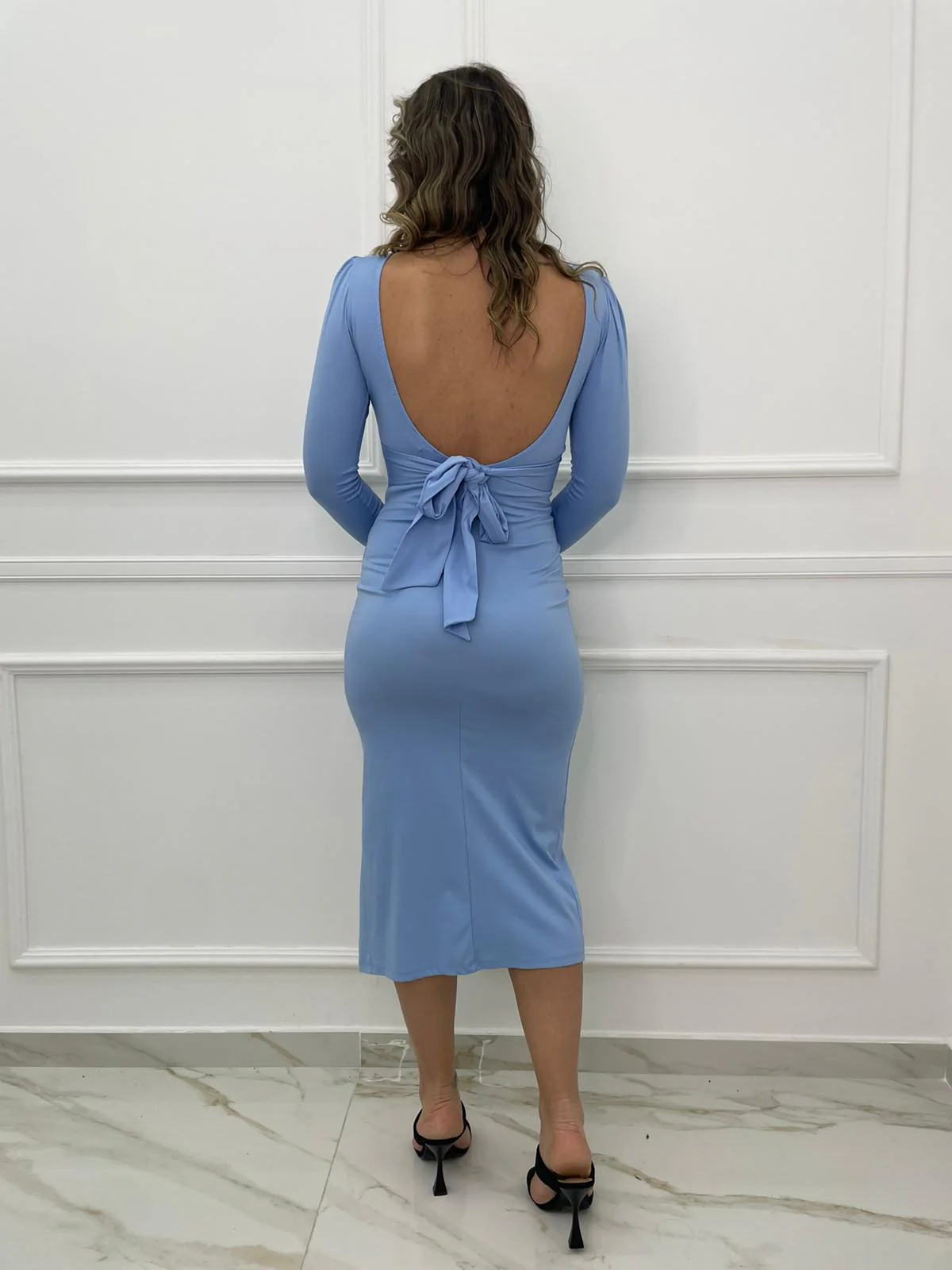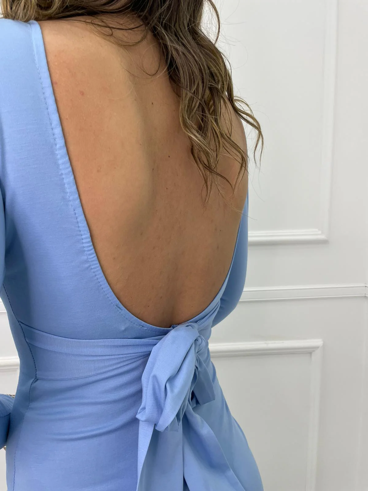 Vestito lungo con schiena scoperta e fiocco dietro