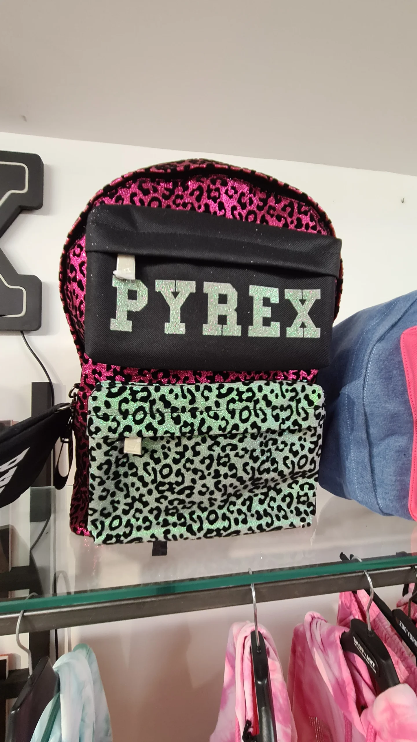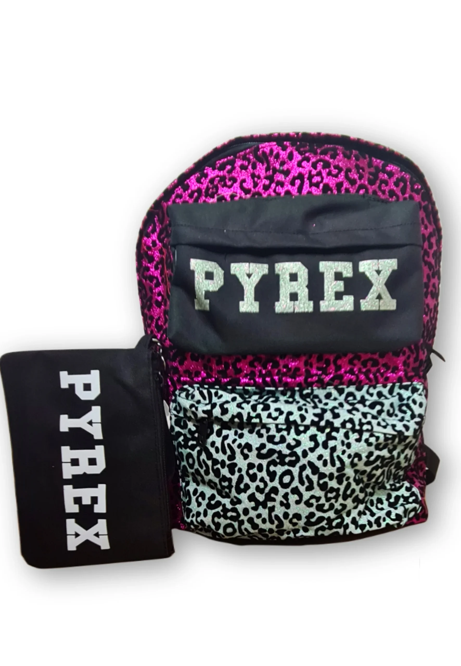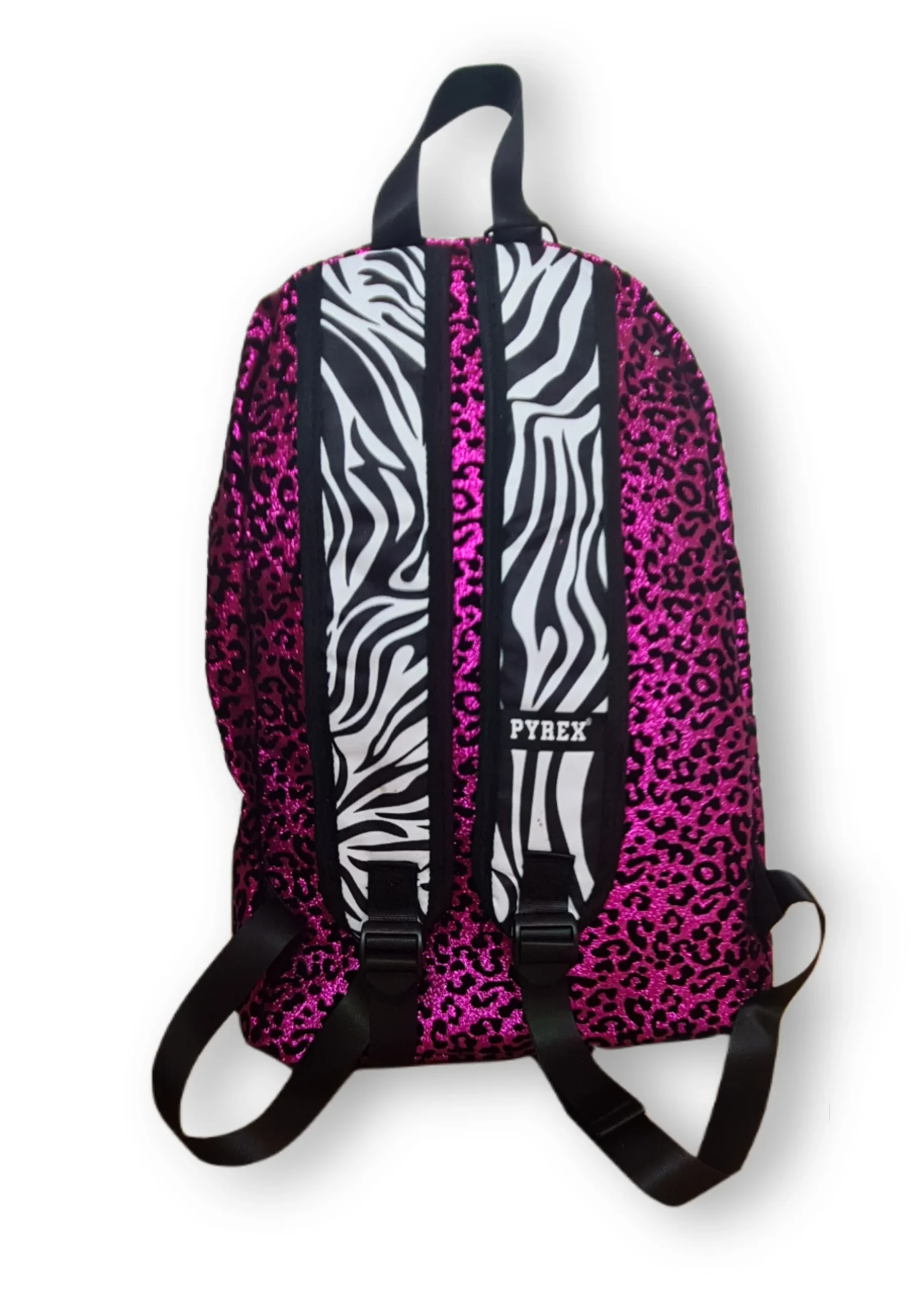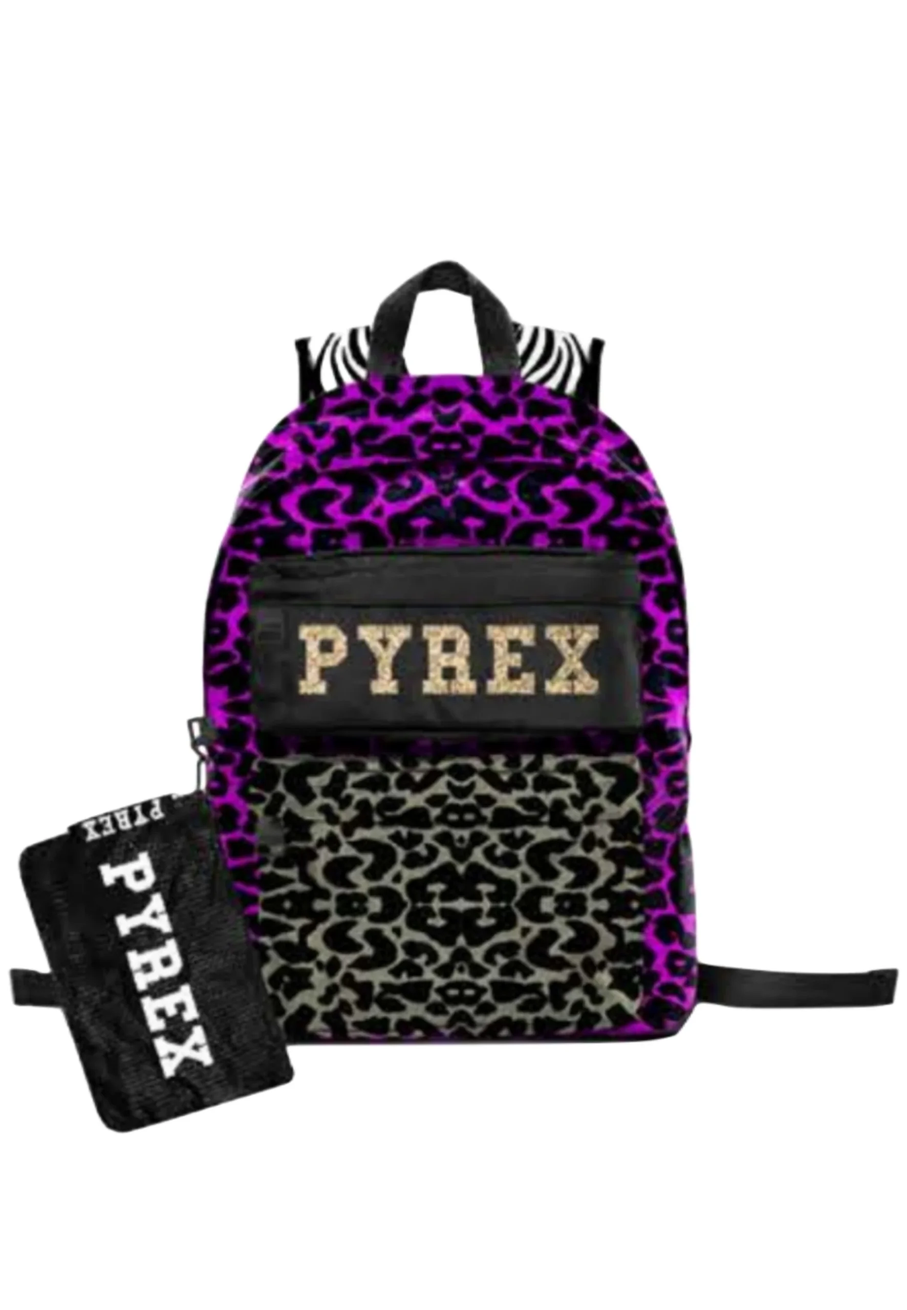 Zaino PYREX doppia tasca glitter leopard/nero/zebrata + mini pochette